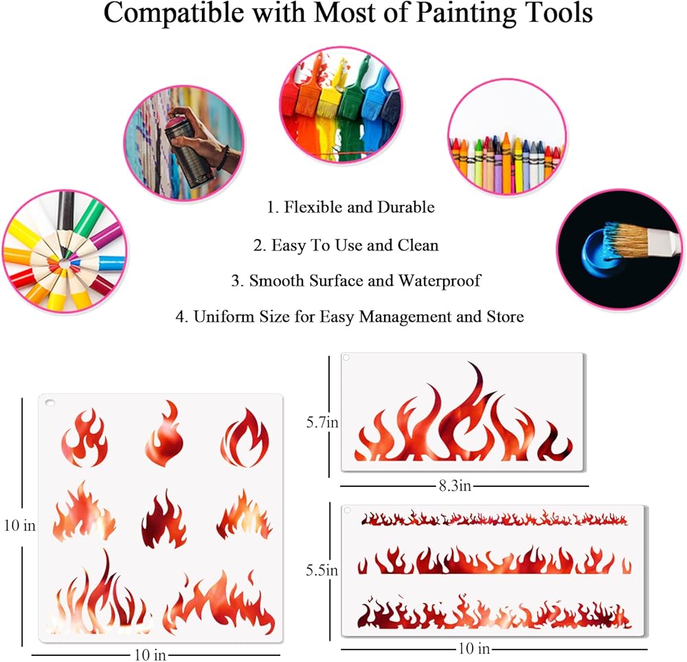 الكمية: 8 قطع استنسل طلاء اللهب