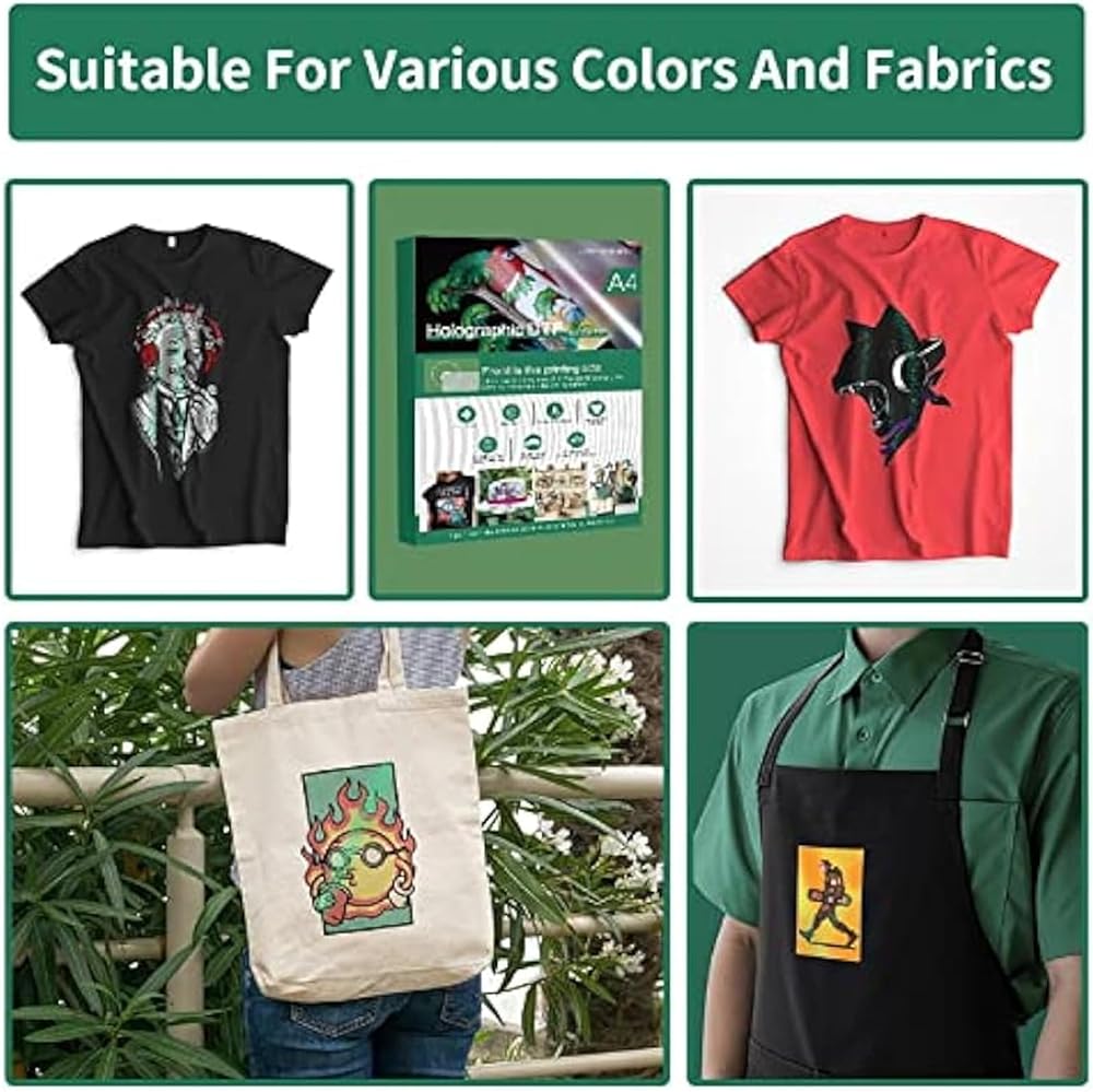 لا حاجة للمعالجة المسبقة: واحدة من أعظم فوائد غشاء دي تي اف هي أنه لا يتطلب معالجة مسبقة، مما يوفر لك الوقت والمال. يمكنك الطباعة على التيشيرتات والقبعات والشورتات والسراويل والحقائب والأعلام واللافتات وأي منتجات قماشية أخرى.