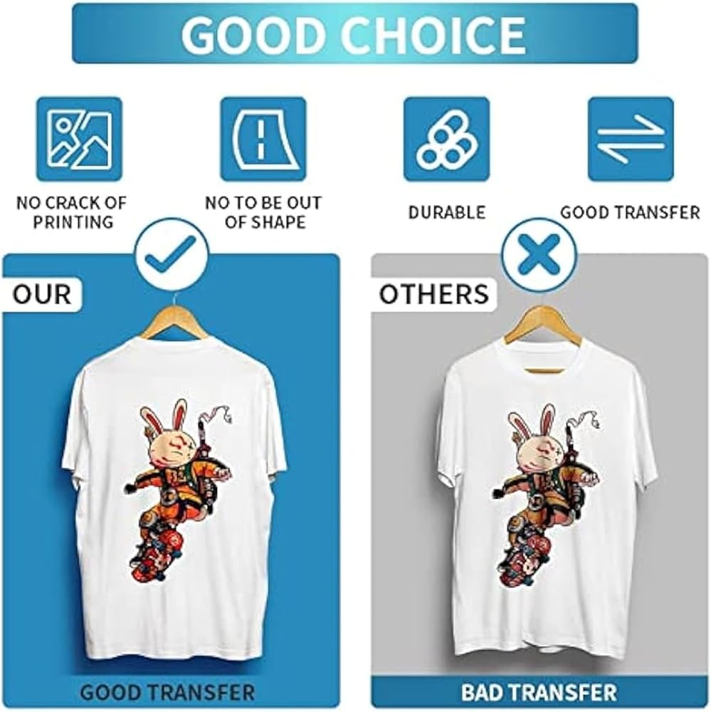 توافق واسع: متوافق مع جميع طابعات DTF وطابعات sublimaiton. تناسب طابعات ابسون وجميع طابعات دي تي اف. (يرجى ملاحظة: لاستخدام غشاء نقل سينديل دي تي اف، ستحتاج إلى طابعة دي تي اف وحبر دي تي اف ومسحوق دي تي اف. ) لا يوجد علاج مسبق، يمكنك الإبداع والطباعة والقص حسب المقاس الذي تريده دون إزالة الأعشاب. يمكنك الطباعة على القطن غير المعالج والجينز والحرير والبوليستر والجينز والنايلون والليكرا والجلد والمزيج والعديد من المواد الأخرى.
