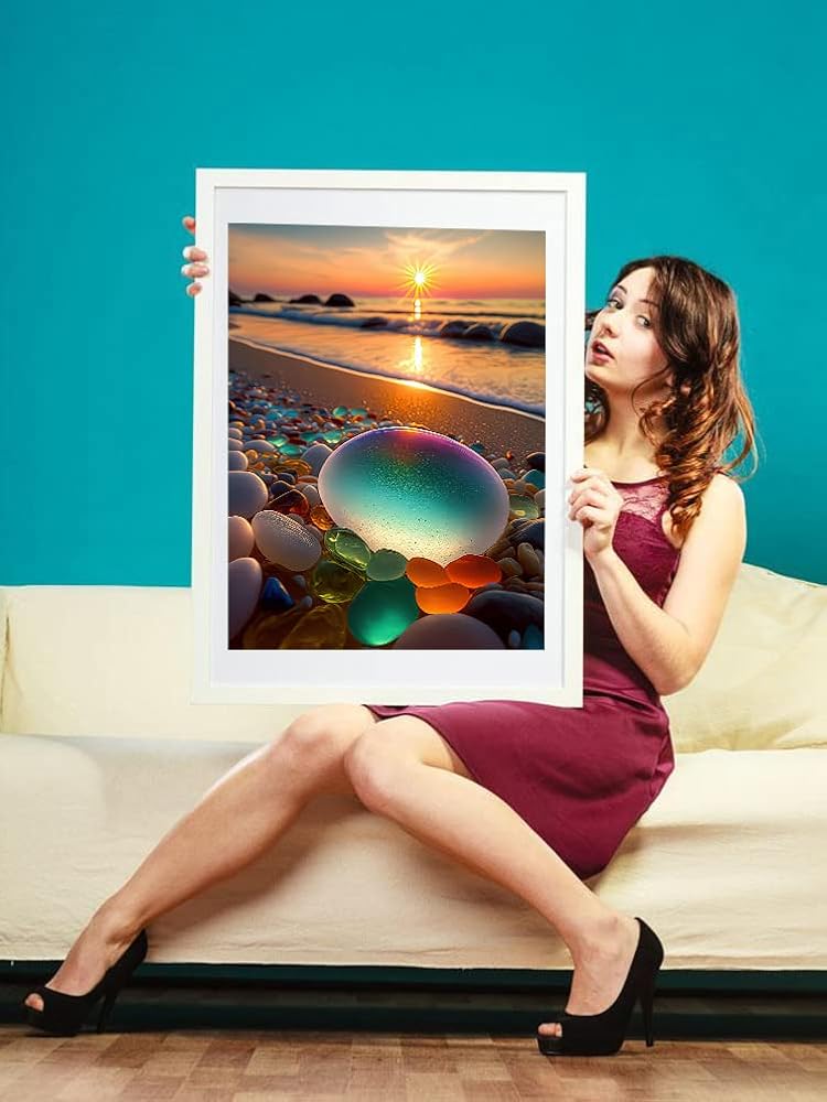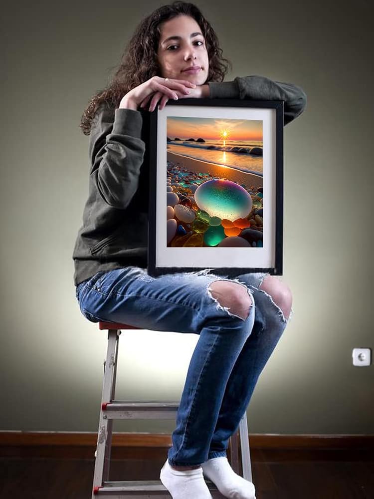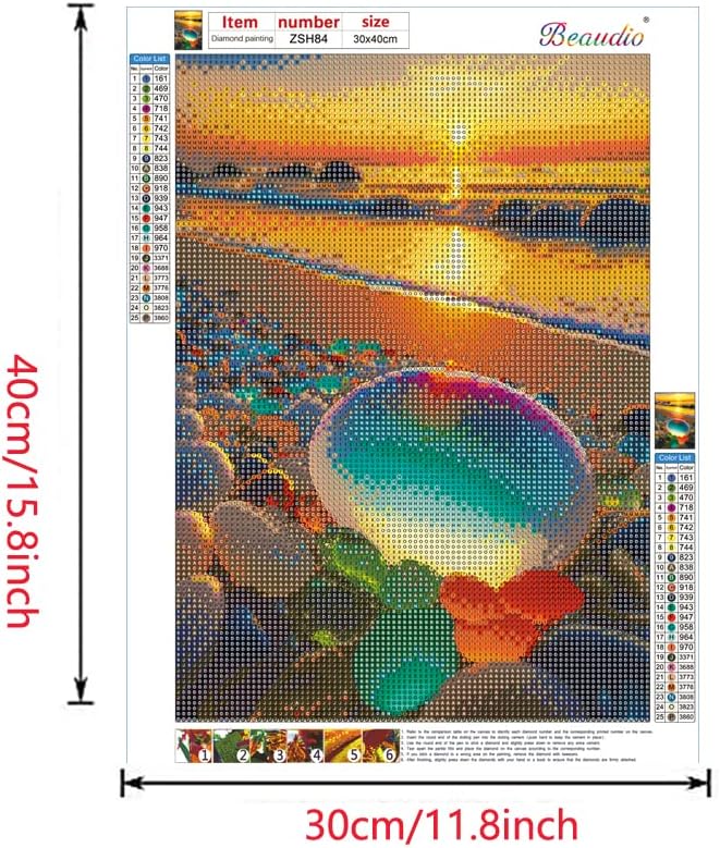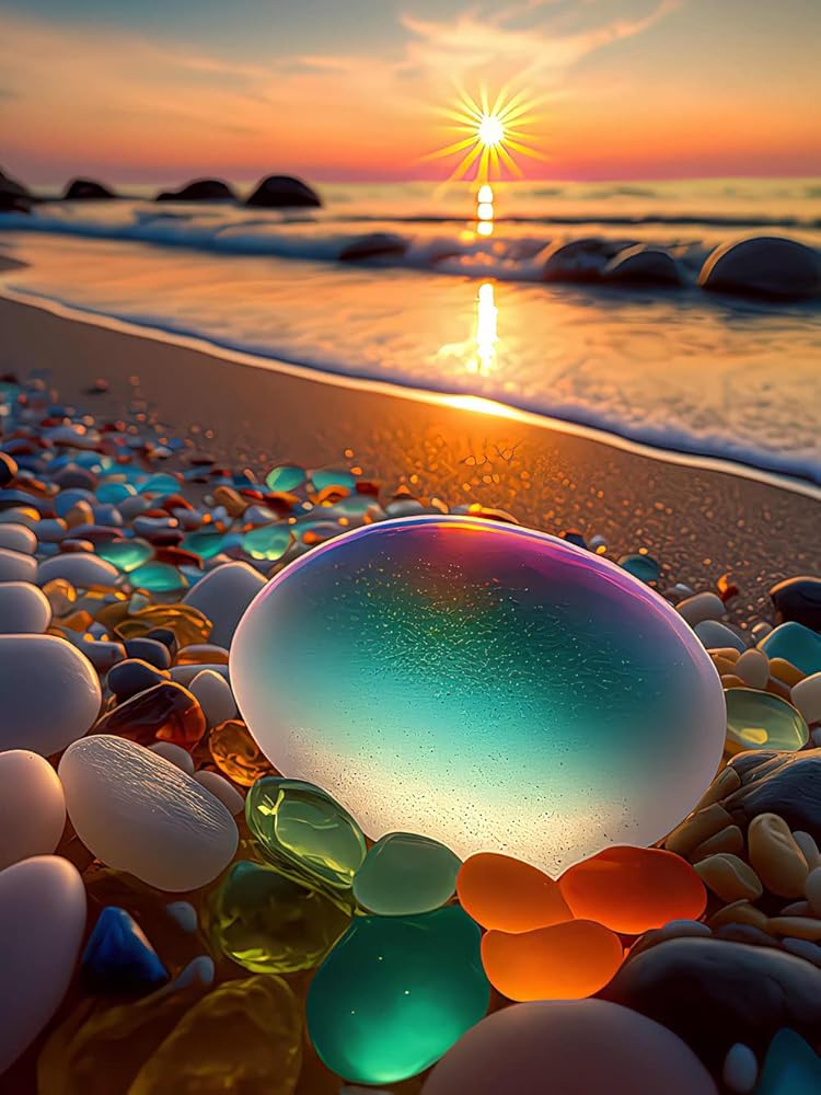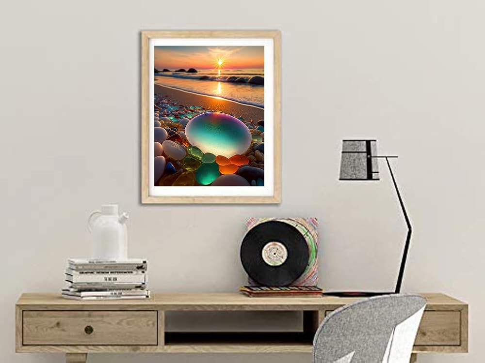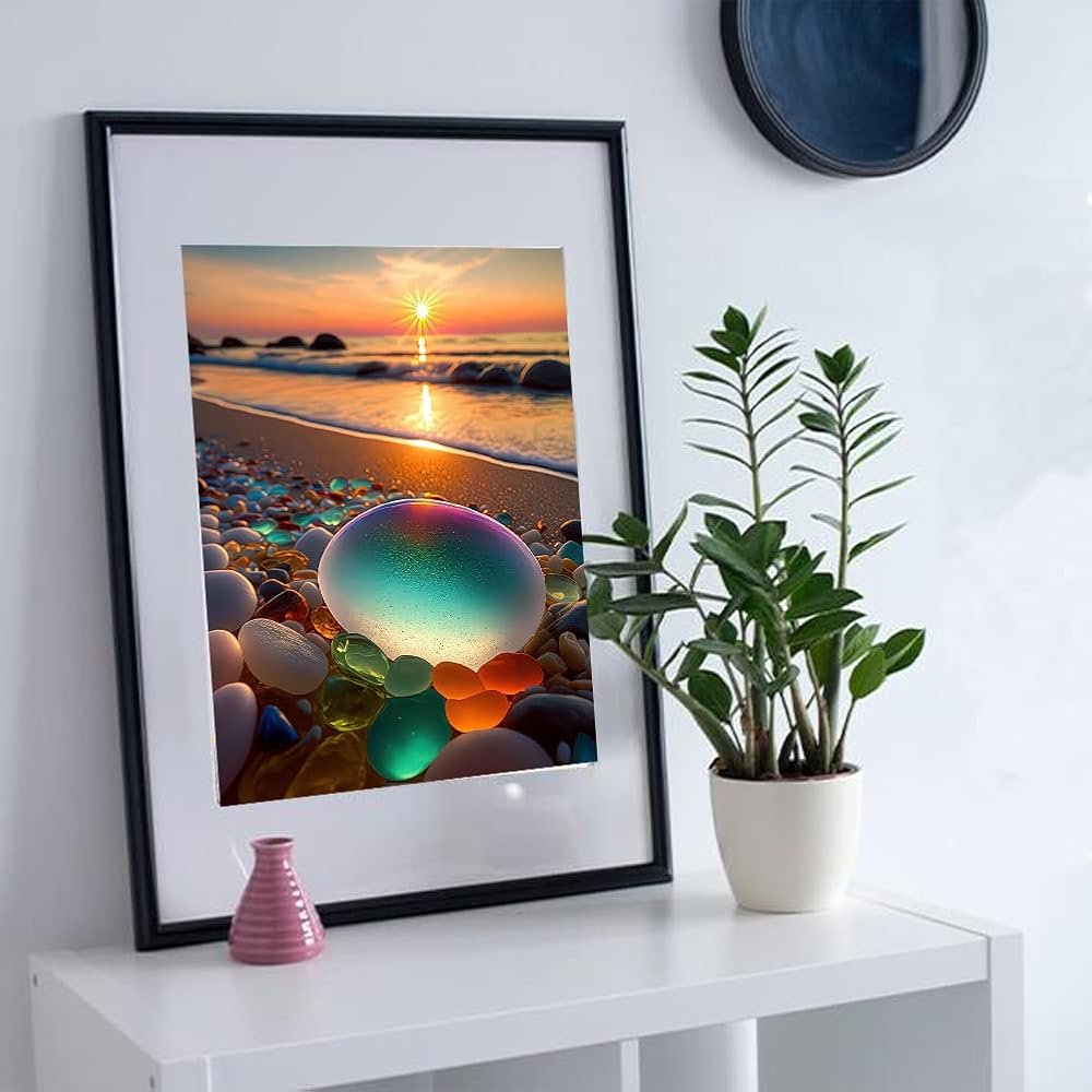 بي اوديو مجموعة رسم ماسي من سلسلة المناظر الطبيعية للبالغين - حجر ملون ساطع على شاطئ شروق الشمس - مثقاب دائري كامل 5 دي فني ماسي لتزيين جدران المنزل (11.8 × 15.7 انش)