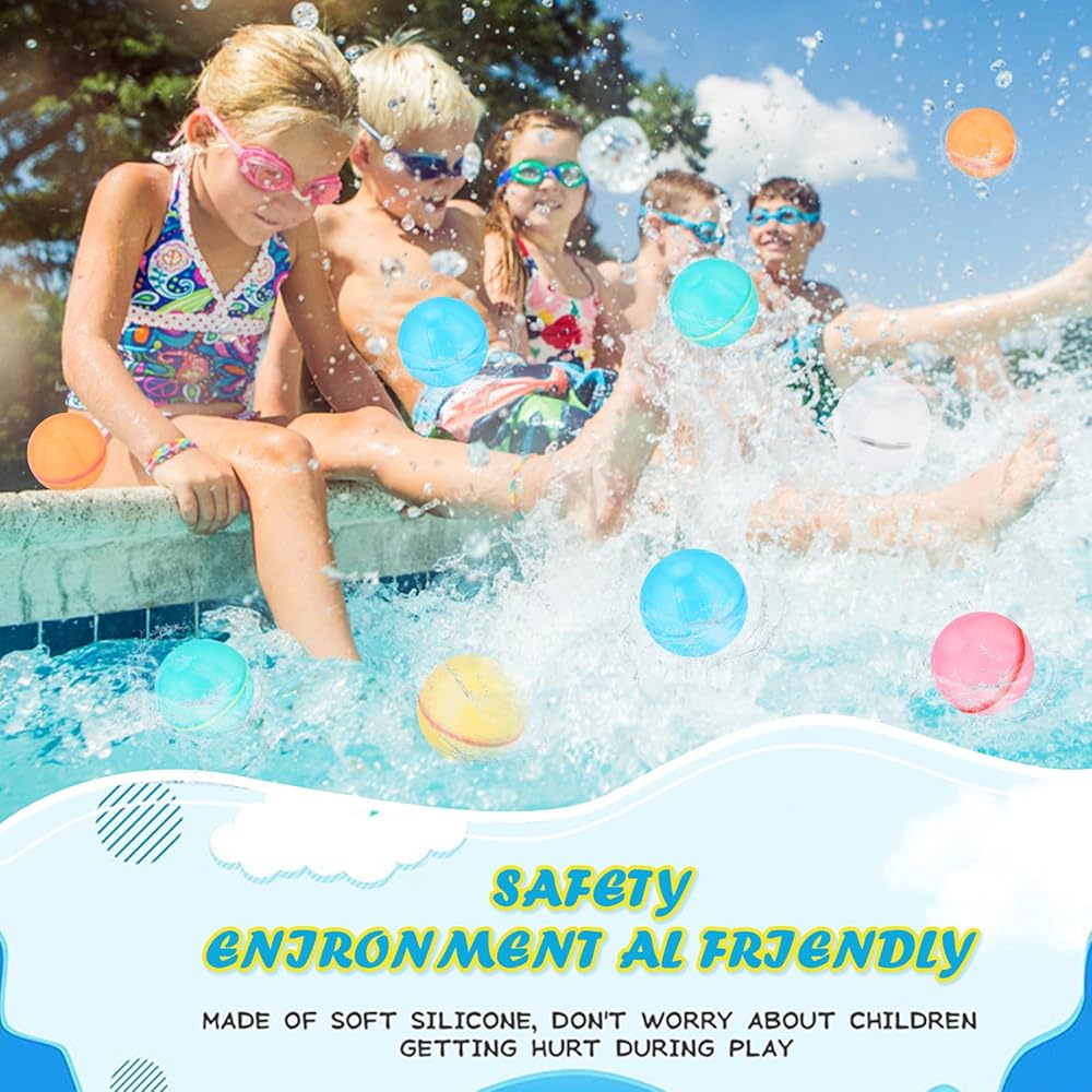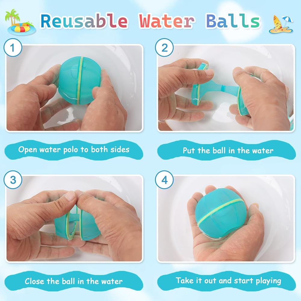 【Refillable and Self Sealing】Open the water balloons and put it into the water, it will quick fill with water and self sealing then you can throw it directly. Enjoy the happy pool time. it can be reused without polluting the environment.