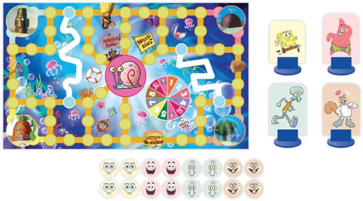 • لعبة سبونج بوب أين غاري؟ تحتوي اللعبة اللوحية على لوحة ألعاب واحدة و4 قطع شخصيات سبونج بوب سكوير بانتس و16 رمزًا و1 دوارًا وتعليمات.