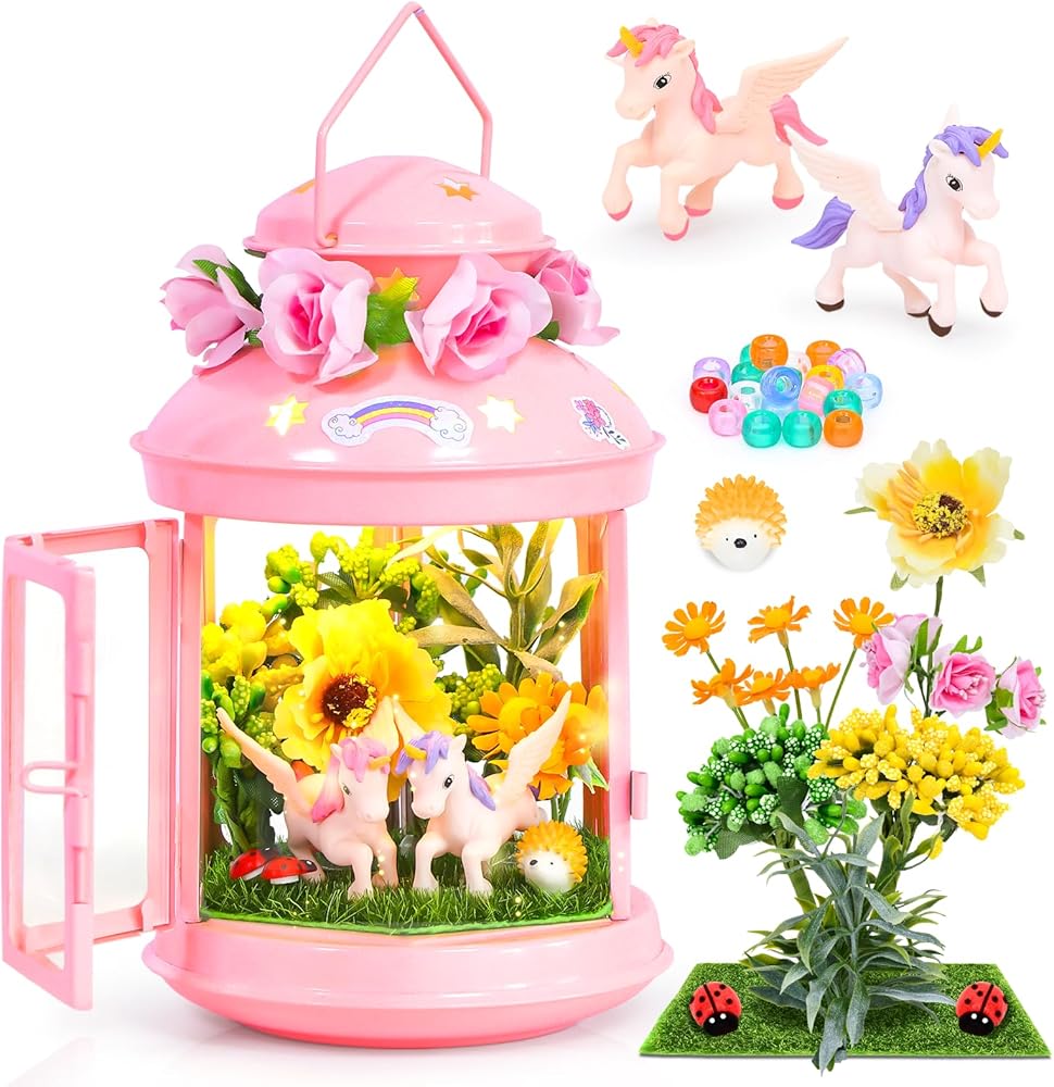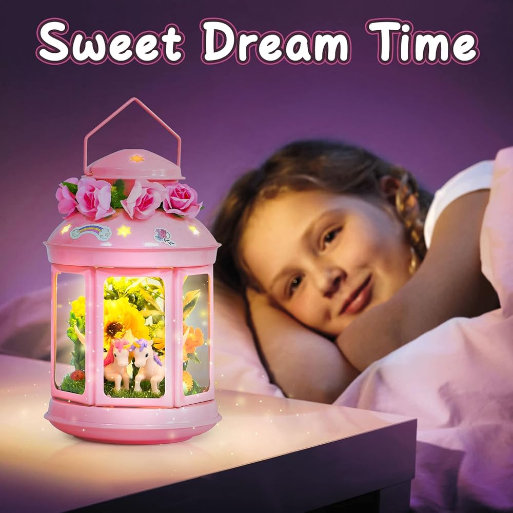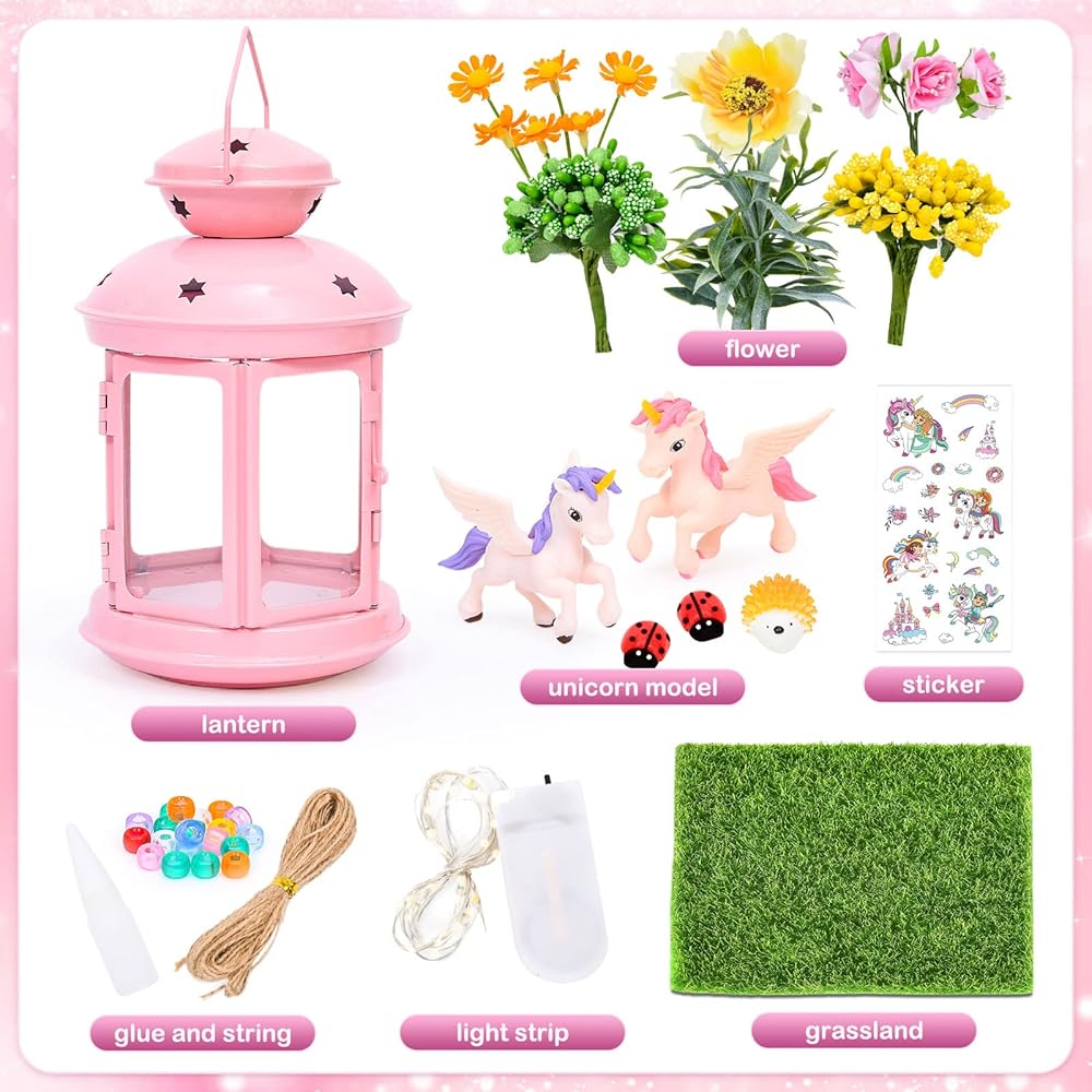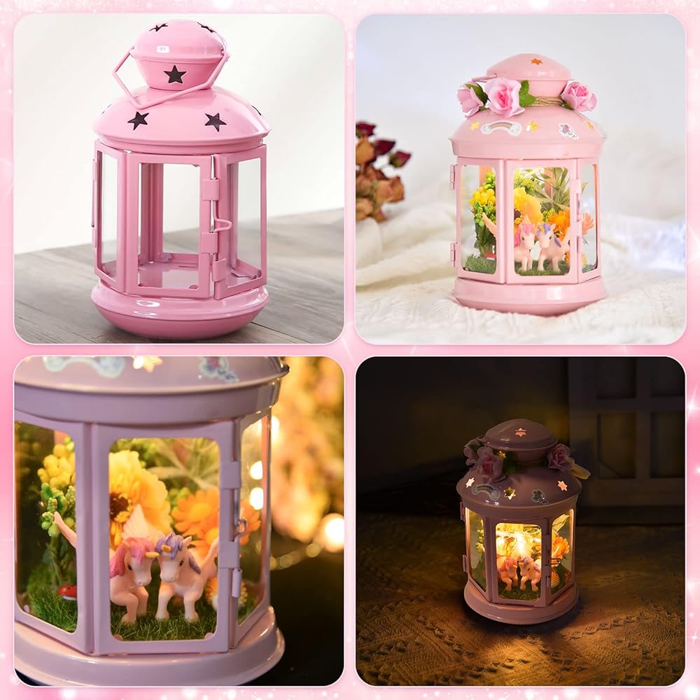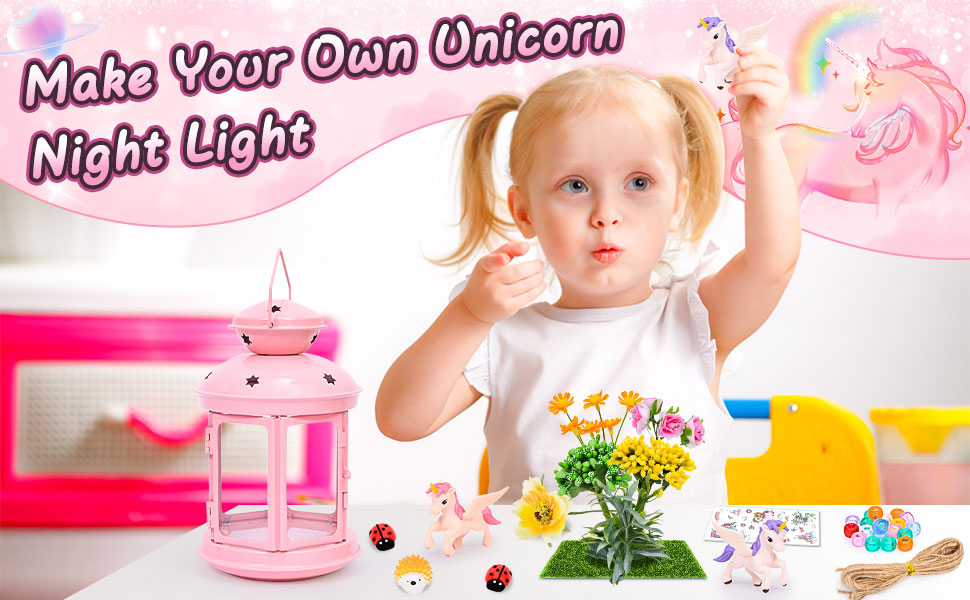 جي سي اصنع مصباح ليلي يونيكورن الخاص بك للفنون والحرف اليدوية، مصباح معدني محمول باللون الزهري لتزيين غرفة الحديقة، هدية عيد ميلاد، مجموعة العاب يونيكورن للاعمار من 4 5 6 7 8-10 سنوات