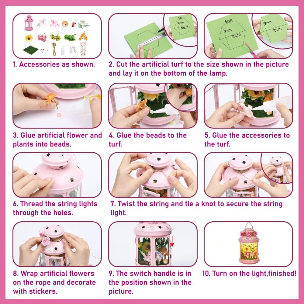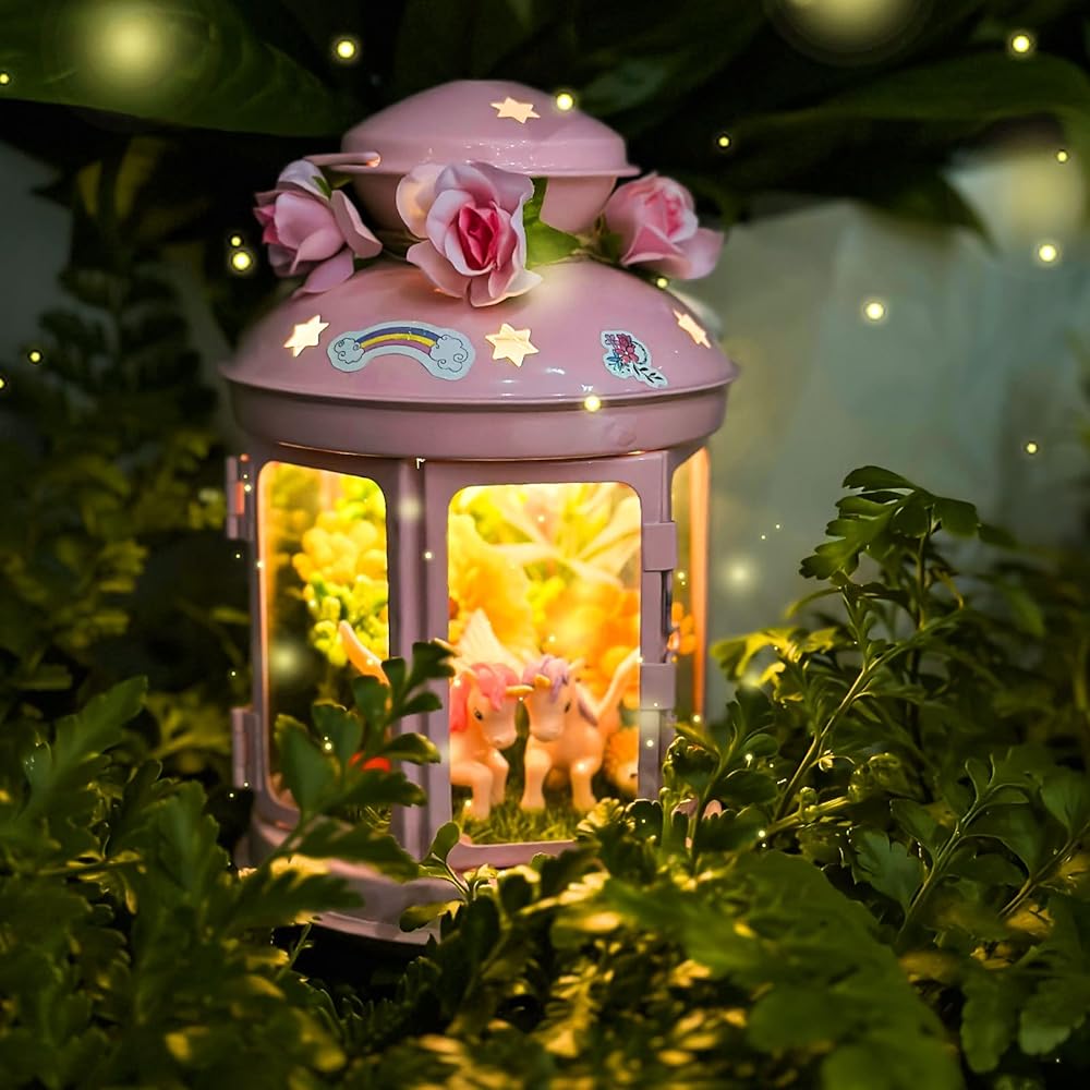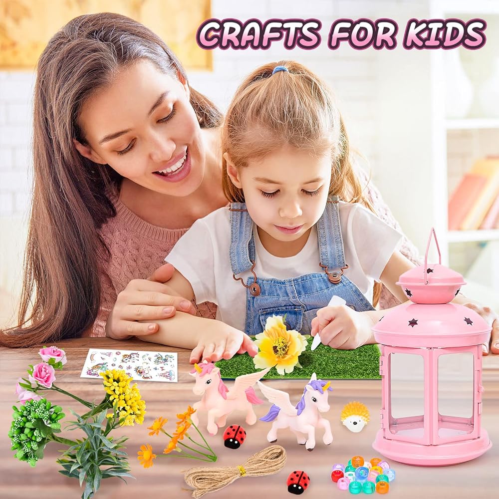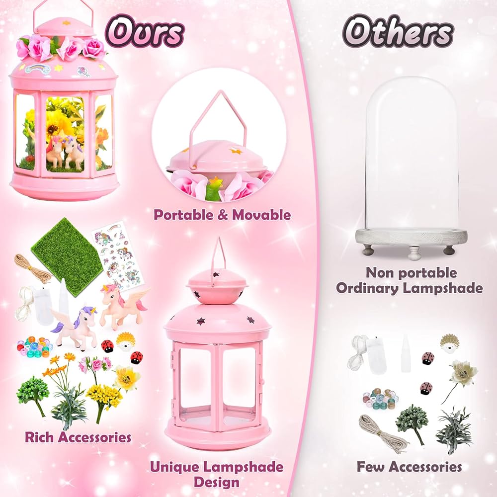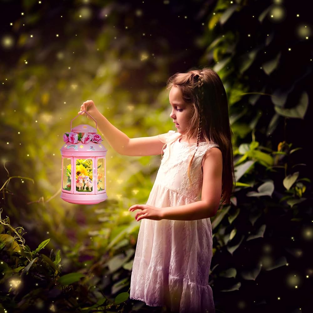 جي سي اصنع مصباح ليلي يونيكورن الخاص بك للفنون والحرف اليدوية، مصباح معدني محمول باللون الزهري لتزيين غرفة الحديقة، هدية عيد ميلاد، مجموعة العاب يونيكورن للاعمار من 4 5 6 7 8-10 سنوات
