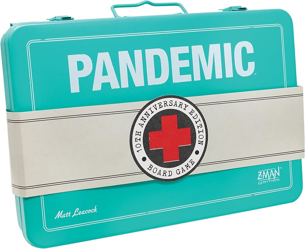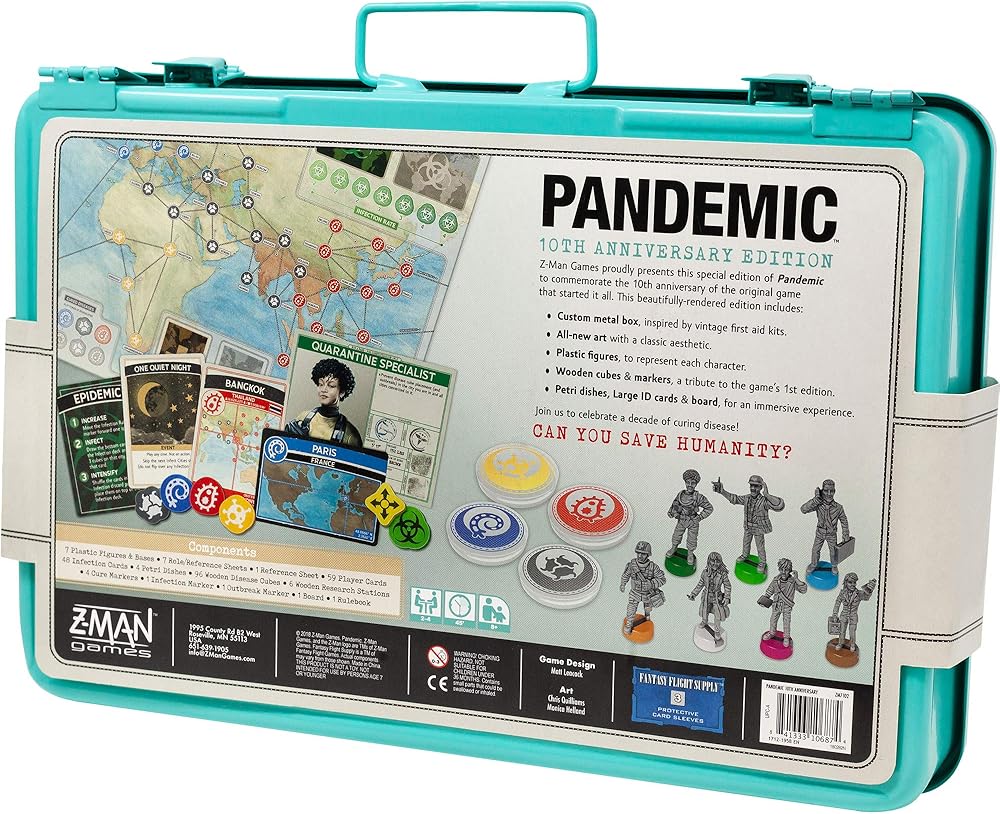لعبة Pandemic Board Game 10th Anniversary Edition - إصدار Limited Style مع مربع معدني مخصص! لعبة تعاونية للأطفال والكبار ، الذين تتراوح أعمارهم بين 13+ ، 2-5 لاعبين ، و 30 دقيقة من اللعب ، مصنوعة من Z-Man Games