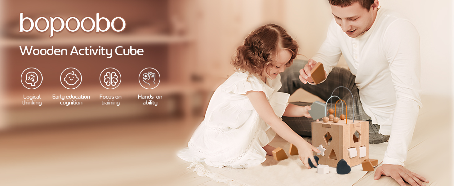 bopoobo Wooden Activity Cube Center Toys with Bead Maze Shape Sorter for 1-3 Montessori Toys for Toddlers Educational Wooden Developmental Learning Toys for Kids