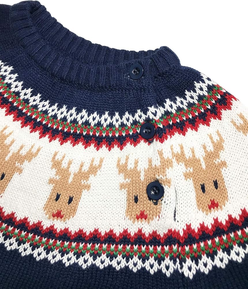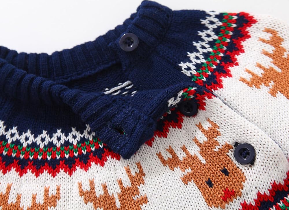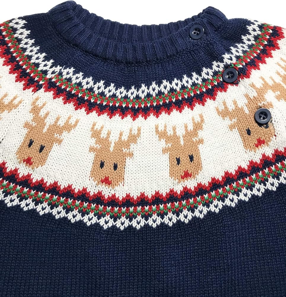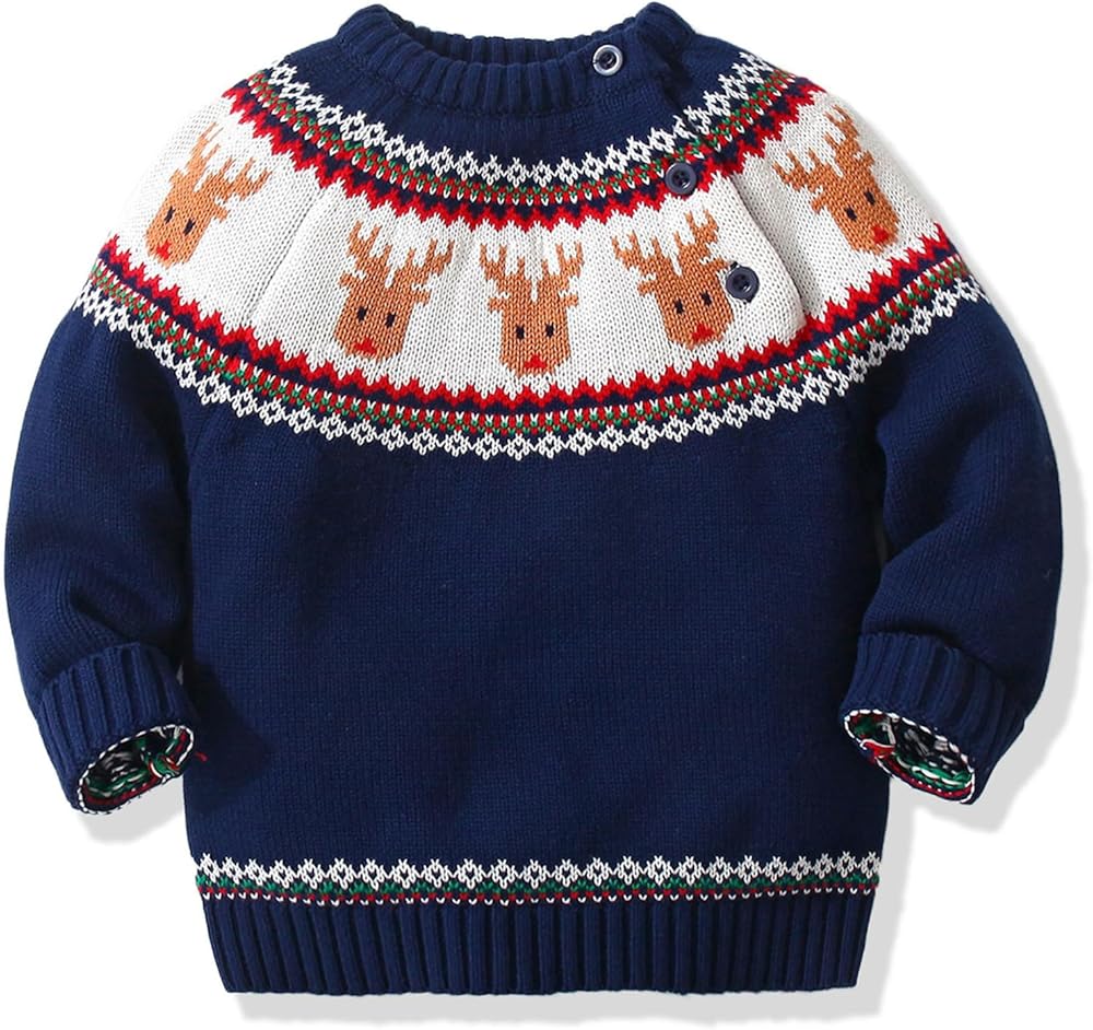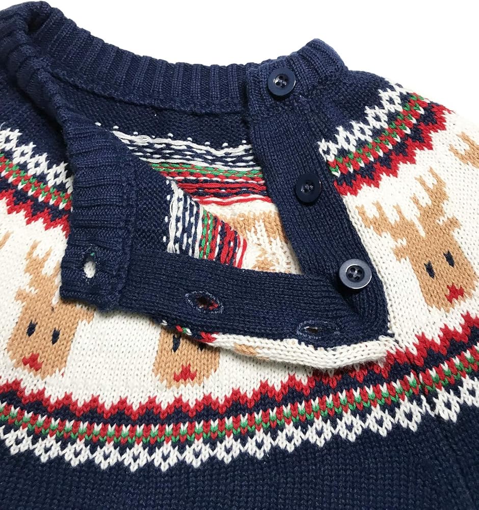 CUTE & CLASSIC : Classic crew neck long sleeve boys sweater featuring reindeer, looks very adorable, with 2 buttons on the shoulder, easy to put on and take off.