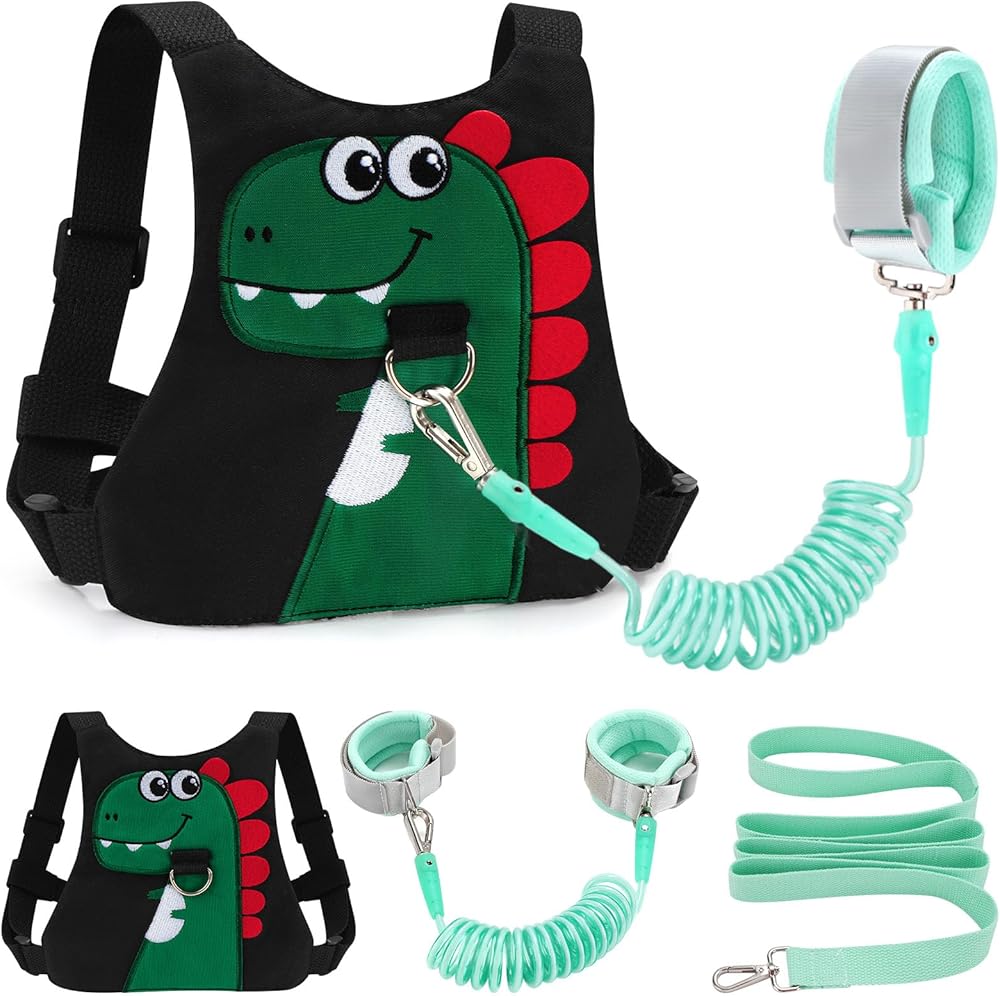 مقود للأطفال الصغار - حزام أمان للمشي للأطفال ووصلة معصم مضادة للضياع للسفر للفتيات/الأولاد (أسود)