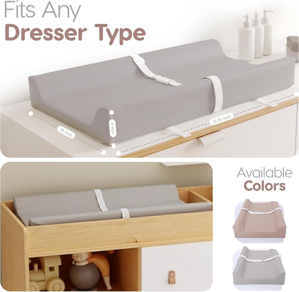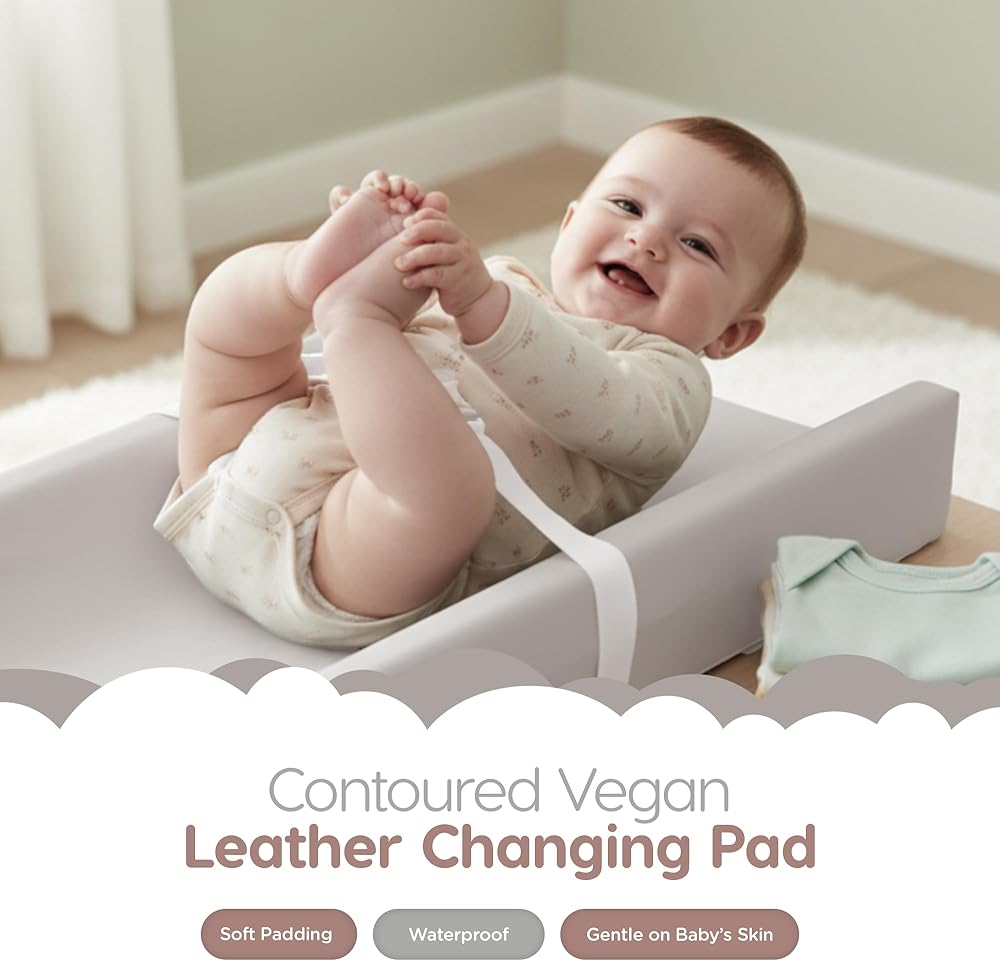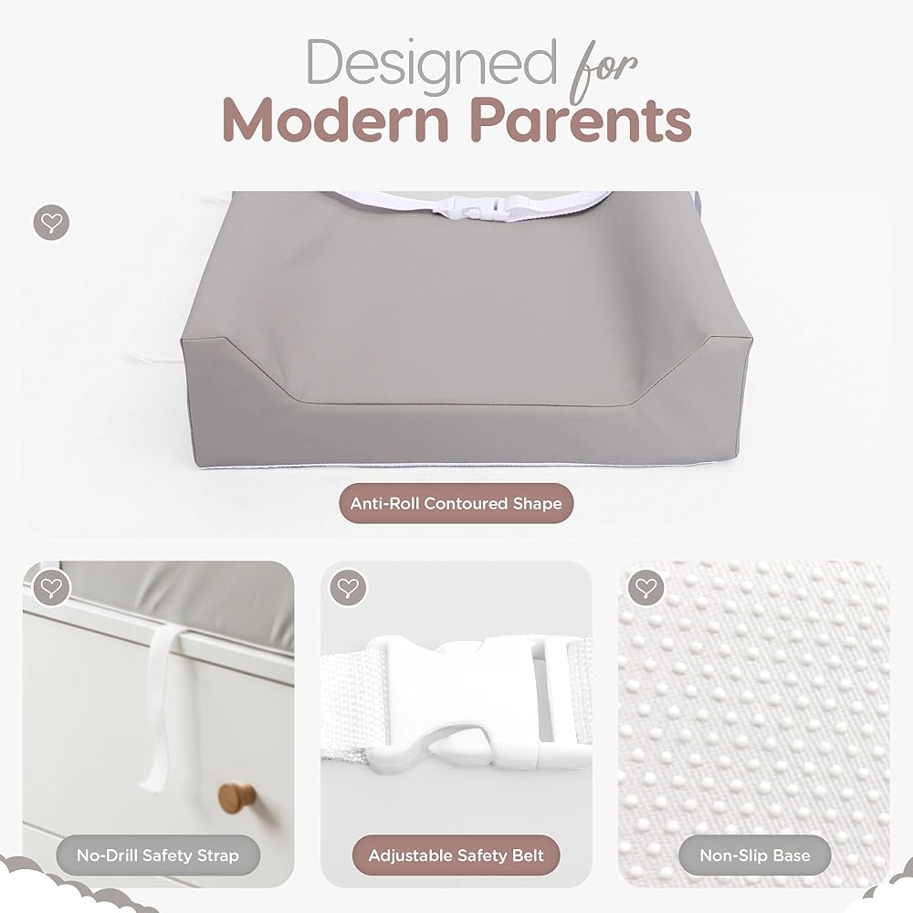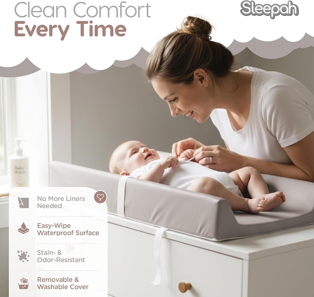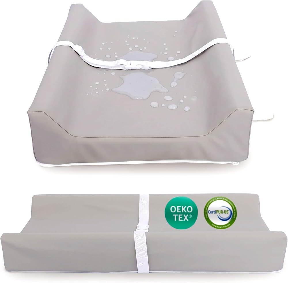 وسادة تغيير حفاضات الأطفال من الجلد النباتي من Sleepah - وسادة تغيير حفاضات إسفنجية مقاومة للماء وقابلة للمسح لخزانة الملابس أو الطاولة مع غطاء قابل للإزالة والغسل في الغسالة - وسادة تغيير حفاضات ذات حجم قياسي - رمادي