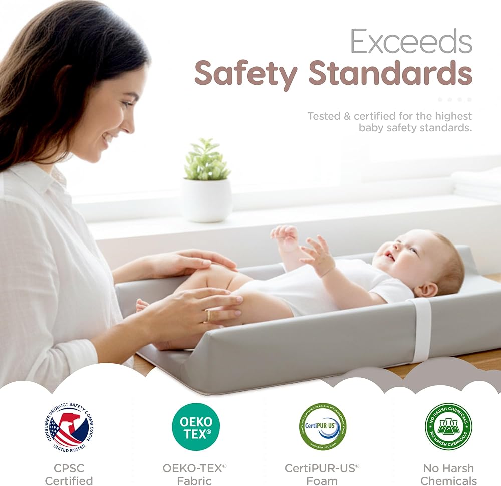 موثوق بها من قبل الأمهات - معترف بها وموثوق بها من قبل مئات الآلاف من الأمهات في كل مكان، تتحدث وسادة تغيير الحفاضات لدينا كثيرًا عن السلامة والجودة. لقد أكسبتنا المواد العضوية والتصميم الفائق والبناء عالي الجودة شهادة OEKO-TEX STANDARD 100 وسمحت لنا بتجاوز جميع معايير السلامة CPSC. مع سياساتنا الصديقة للعملاء، مثل الضمان مدى الحياة وسياسة الإرجاع لمدة 30 يومًا، نضمن رضاك دائمًا.