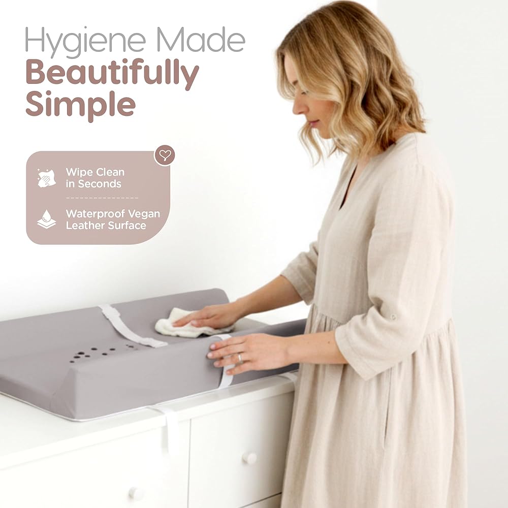 مقاومة للماء وقابلة للغسل - بالإضافة إلى الراحة والأمان، فإن وسادة تغيير محيط الجسم الخاصة بنا مقاومة للماء، وتقاوم جميع الحوادث الصغيرة بسهولة. عملية التنظيف سهلة. ببساطة قم بتنظيفه يدويًا أو امسحه. تبدو نظيفة ومنتعشة وجاهزة لجلسة التغيير التالية، مما يوفر حلاً طويل الأمد للآباء المشغولين.