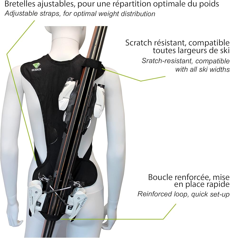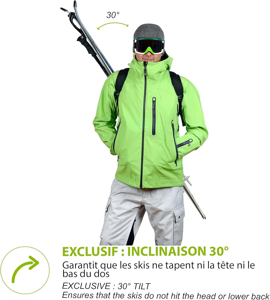 • عملية ومريحة: مصممة لجعل الحياة أسهل للمتزلجين، Skiback هو منتج حاصل على براءة اختراع يسمح لك بحمل الزلاجات بسهولة وراحة. تم تصميم ميل 30 لتجنب تأثير الزلاجات على الرأس وأسفل الظهر. الأشرطة القابلة للتعديل ستسمح لك بضبط حذاء سكيباك على راحتك لتوزيع الوزن.