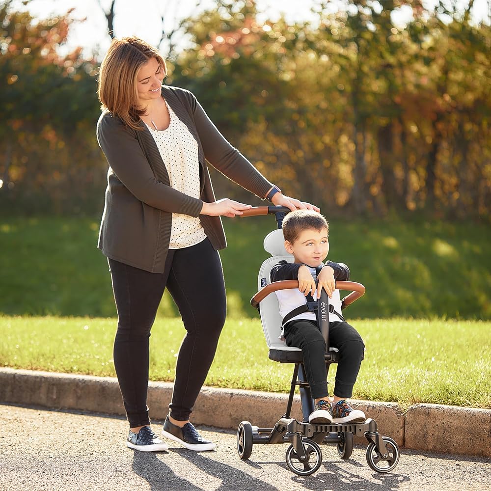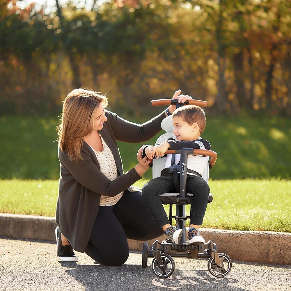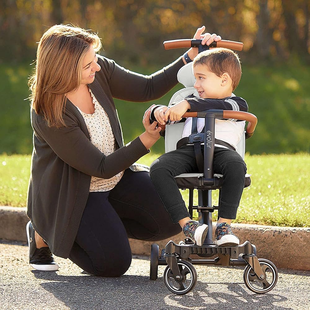 Let your little one discover the world from the lap of luxury aboard the Evolur Cruise Rider Stroller with Canopy! A proud winner of the 2023 NAPPA Awards, this one-of-a-kind stroller is loaded with features for those afternoon walks, grocery runs & family outings. This compact stroller folds inwards like a book in seconds, easily reclines & can be carried on your shoulder everywhere (Carry Belt included). With a high-density, durable handle & bumper grip (optional closed bumper & T-bar), front wheels with suspension, and a one-touch link brake, the Cruise Rider Stroller with Canopy is crafted for easy maneuverability. By effortlessly converting to a Scooter & Rider, this innovation-driven stroller combines flexibility and functionality. Safety comes first as this stroller comes with a 5-point safety harness and meets/exceeds ASTM, CPSC & Federal Flammability standards. Maximum comfort for your child with a plush seat, padded headrest & extendable backrest for taller babies. The Cruise Rider Stroller with Canopy comes with accessories like the Cruise Rider Twin Connector, Storage Basket, Rain Cover & a fun Scooter front (All sold separately). Easy to maintain by wiping with a damp cloth & air dry.