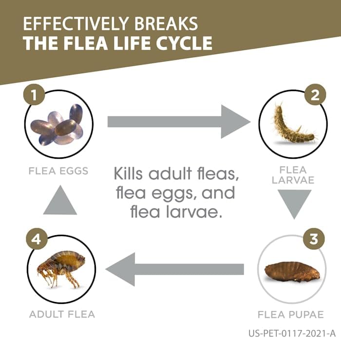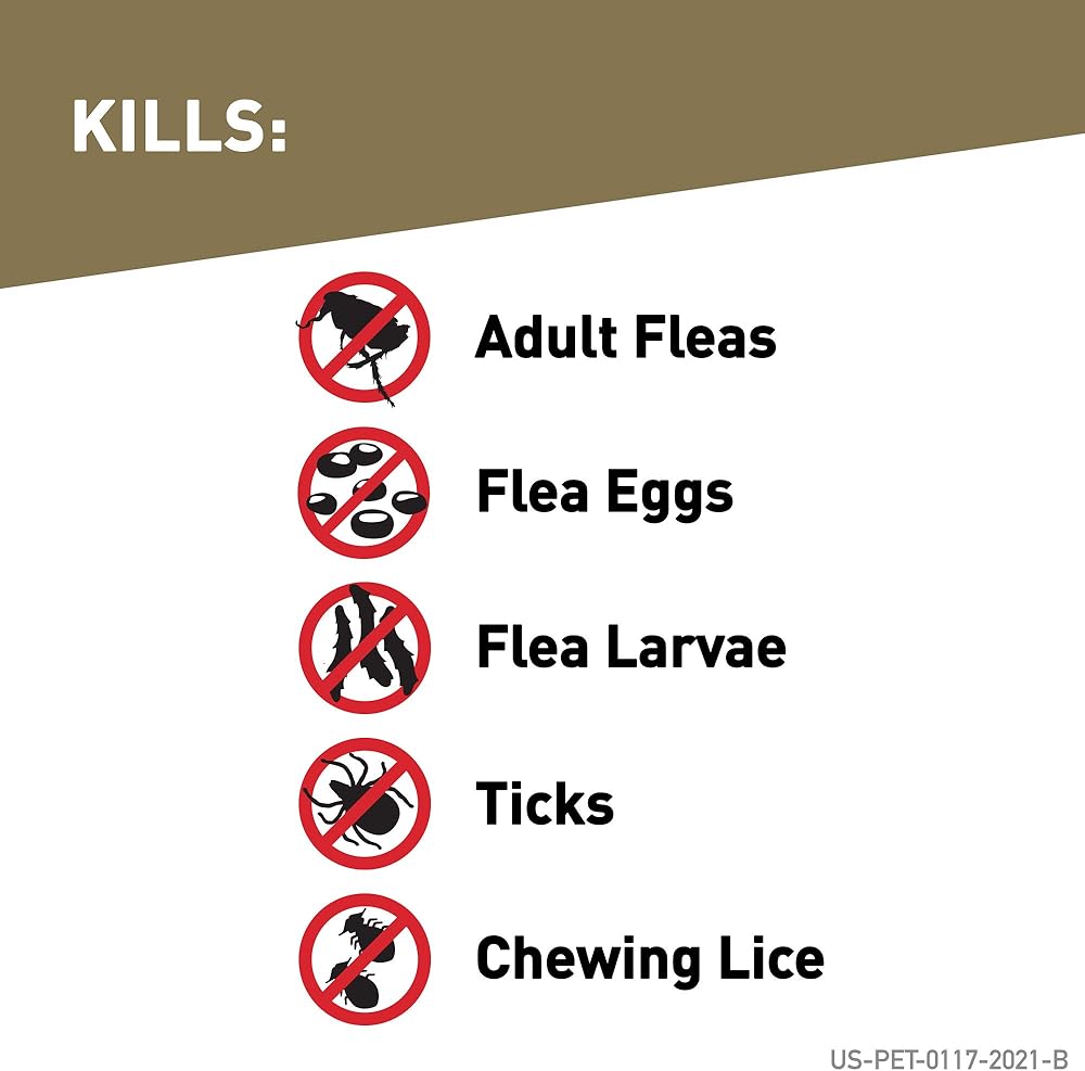 • Kills adult fleas, flea larvae, flea eggs and ticks