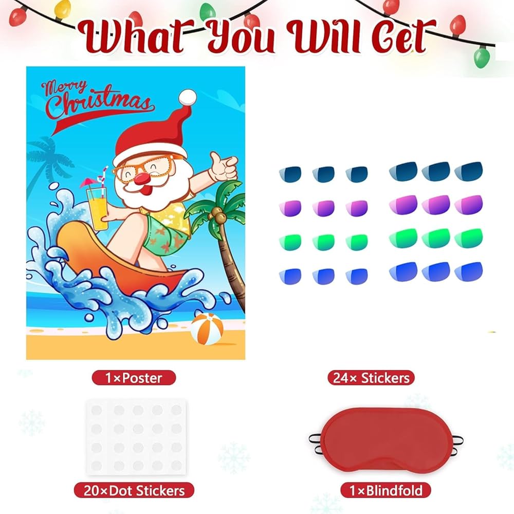 CHRISTMAS KIDS GAMES INCLUDE:1 x Elk game poster, 1 x blindfold, 24 x nose stickers, 20 x dot sticker. The size of the Elk poster is 28 " wide and 21 "tall. These nose stickers are reusable, easy to stick and peel off.