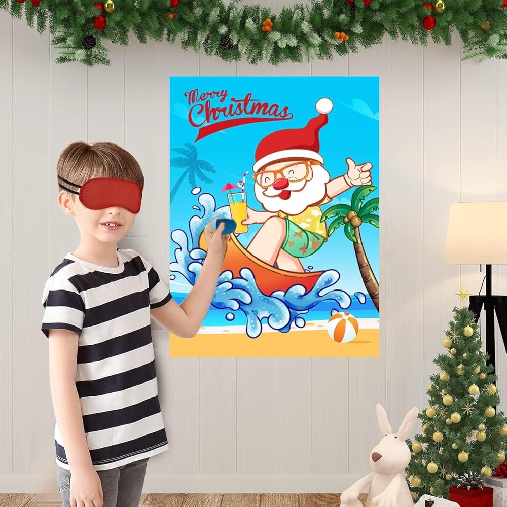 HOW TO PLAY FAMILY CHRISTMAS GAMES:Paste the poster on the wall of our dot stickers, then players wear the eye mask, pin a nose on the poster, whoever sticks his nose closest to the target is the winner.
