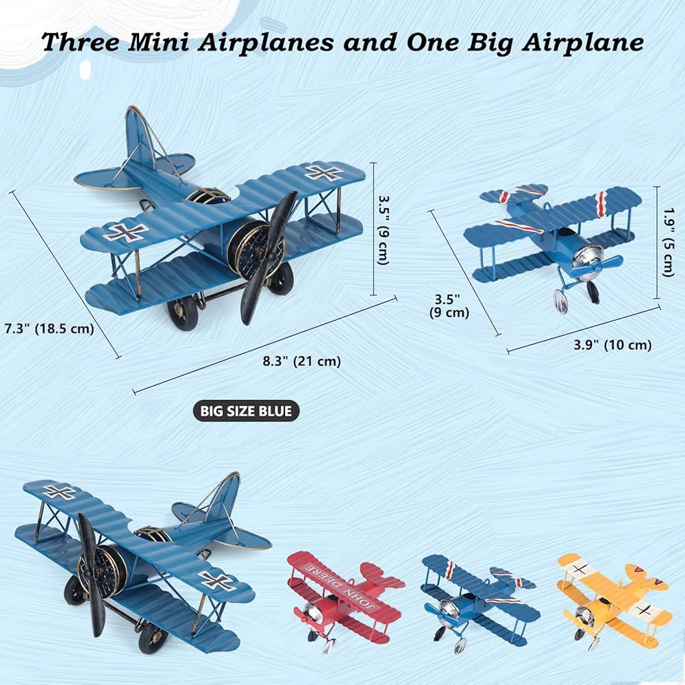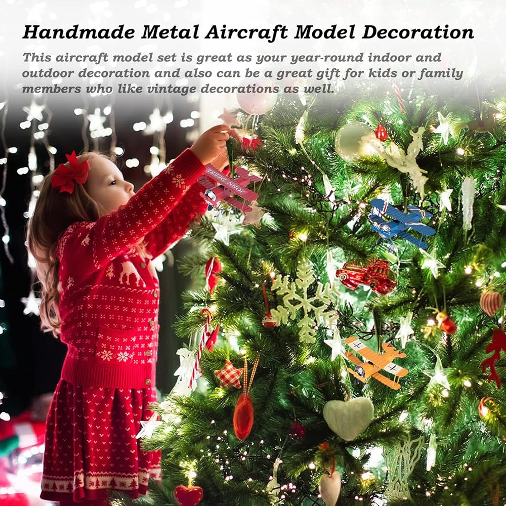تطبيق واسع - نموذج الطائرة الحديدي ذو الحجم الكبير مثالي للمنزل والمكتب والبار والمقهى وتزيين المتجر. طائرة صغيرة صغيرة مثالية لتزيين عيد الميلاد، وتزيين الكعك، وتعليق شجرة الكريسماس، وديكورات الحفلات، وتزيين الطاولة.