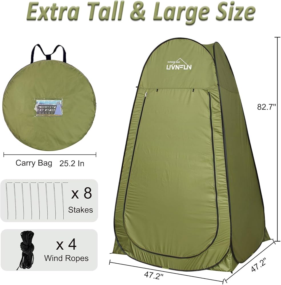 • نسخة مطورة - خيمة دش منبثقة طويلة جدًا وكبيرة الحجم، بطول 6.9 أقدام. يمكن فتحه وطيه بسهولة في ثوانٍ، دون الحاجة إلى تجميع. تبلغ أبعاد الخيمة 47.2 × 47.2 × 82.7 بوصة عند فتحها، مما يوفر مساحة داخلية واسعة وحركة مريحة بالداخل. يمكن طيها لأسفل لتصبح حقيبة حمل مريحة مقاس 25.2 × 25.2 × 1.6 بوصة، ويمكنك أخذها إلى أي مكان