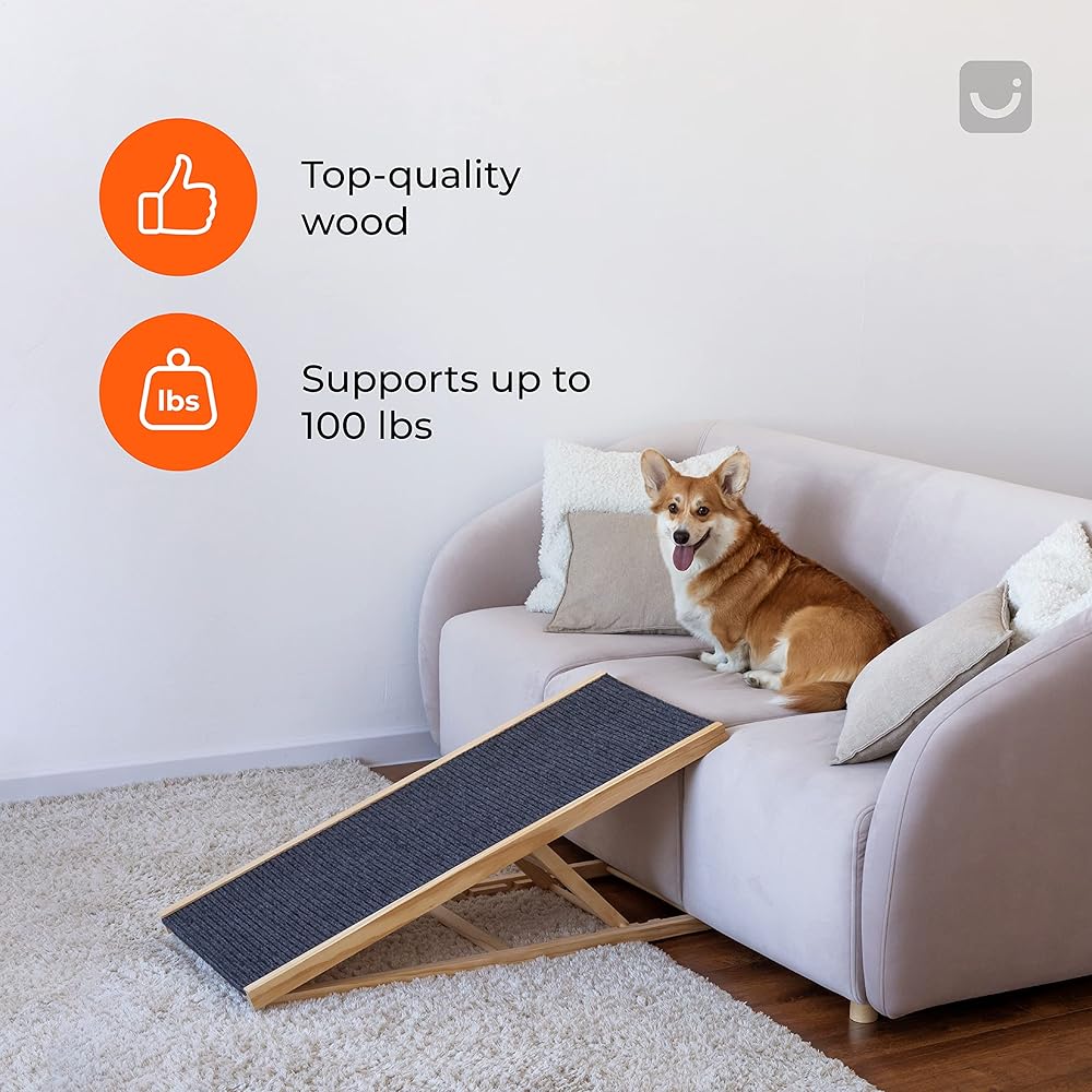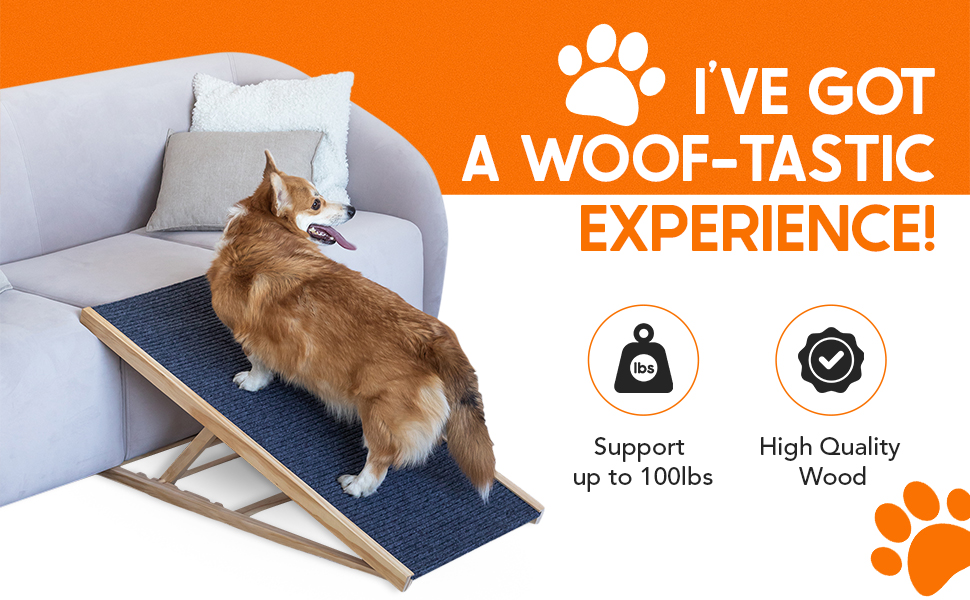 قوي للغاية وآمن - منحدر الحيوانات الأليفة هذا مصنوع من خشب عالي الجودة يدعم الحيوانات الأليفة التي يصل وزنها إلى 100 باوند. تم اختباره من أجل السلامة، وستكون حيواناتك الأليفة آمنة.