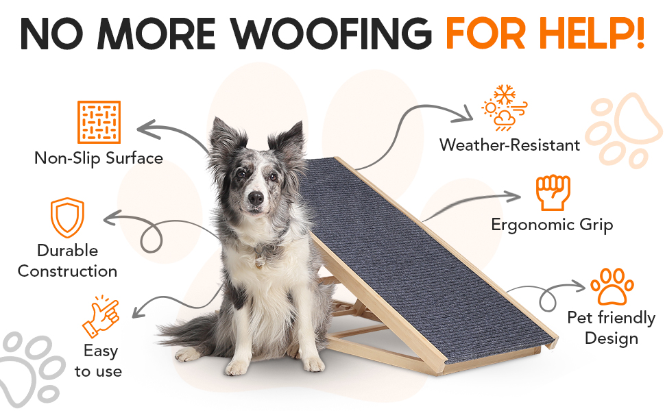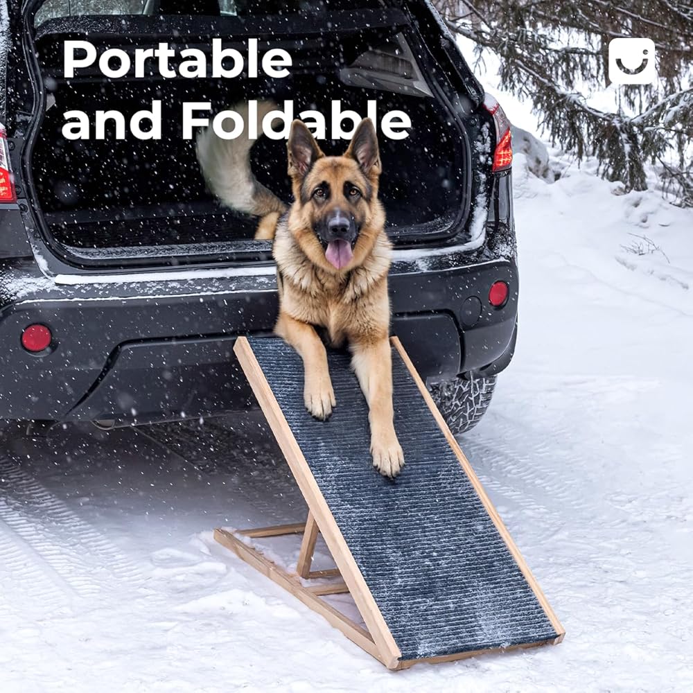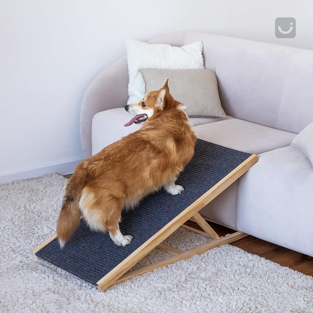 منحدرات الكلاب هي حل بسيط يمكنه تحسين حياة حيواناتك الأليفة بشكل كبير. إنها مثالية للكلاب أو القطط التي تعاني من المتاعب عند الذهاب إلى الأماكن التي تكون بعيدة عن متناولها. يمكن أن تساعد منحدرات الحيوانات الأليفة هذه كلبك على الجلوس على السرير أو في السيارة، وتقليل خطر إصابة القفز. مع التصميم القابل لتعديل الارتفاع، بغض النظر عن ارتفاع سريرك أو أريكتك، سيكون من السهل والأمان لحيواناتك الأليفة الوصول إلى أي مكان يحتاجون إليه. بالمناسبة، منحدر الكلاب القابل للتعديل هذا قابل للحمل والطي، لذلك يمكنك دائمًا اصطحابه معك. استخدم منحدرات الكلاب للسيارات أو ضعها في أي مكان في منزلك - فهي مناسبة تمامًا لأي مكان. منحدرات الكلاب المحمولة هذه مصنوعة من الخشب، لذلك فهي متينة للغاية وتعدك بالاستخدام طويل الأمد. تتحمل ما يصل إلى 100 باوند وتم اختبارها من أجل السلامة. يتميز المنحدر المتين للكلاب بسطح مضاد للانزلاق يحسن بشكل كبير من الاحتكاك على المنحدر ويجعل التسلق أسهل وأكثر أمانًا. يمكن استخدام منحدرات الحيوانات الأليفة هذه للكلاب الصغيرة على الأرضيات المغطاة بالسجاد والأرضيات الصلبة. منحدراتنا القابلة للتعديل مناسبة للكلاب ذات الأرجل القصيرة والصغيرة مثل باجز وكورجيس والكلاب الألمانية والجراء. بالإضافة إلى ذلك، فإنها تعمل بشكل جيد مع أي حيوانات أليفة مسنة أو مصابة مثل القطط القديمة، على سبيل المثال. كما ترى، يمكن أن تكون دائمًا في متناول اليد!
