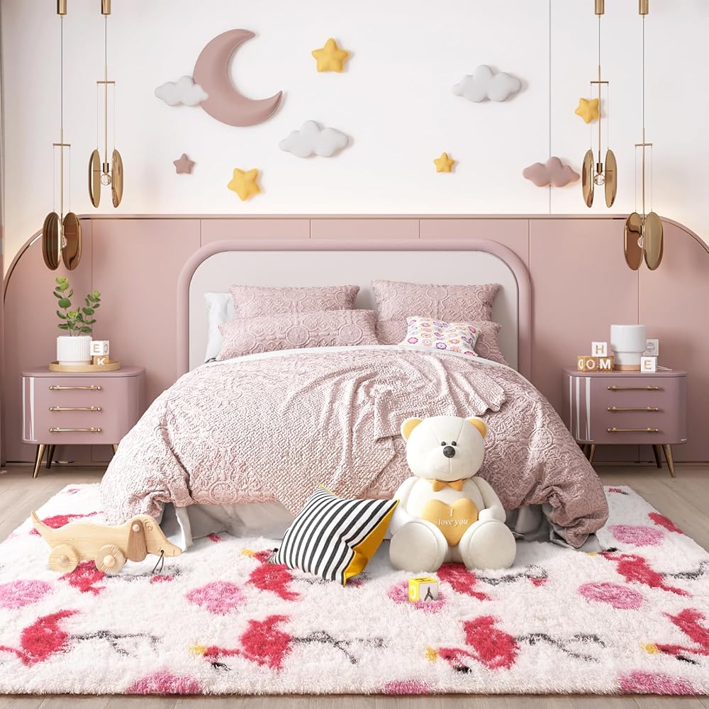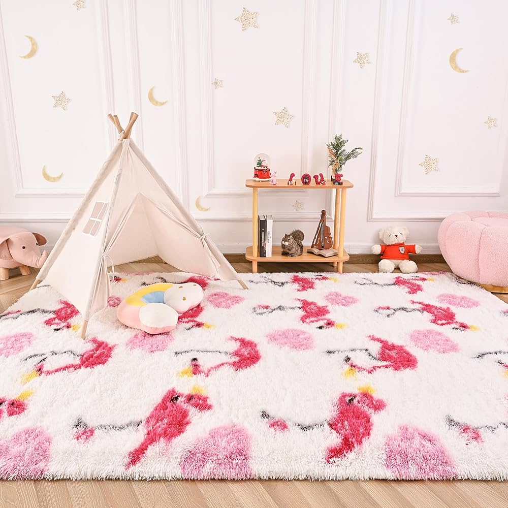 سجادة منطقة فلامينجو وردية أكثر نعومة: سطح سجادة الأطفال مصنوع من مادة الألياف الدقيقة الصديقة للبيئة مع كومة عالية الكثافة، والتي تشعر بملمسها مثل المخمل؛ يحتوي الجزء الداخلي على طبقة من الإسفنج الذكي ذات مرونة عالية، والتي توفر الدفء لحمايتك من البرد، كما يمكن للأطفال أو الحيوانات الأليفة الاسترخاء واللعب على السجادة بما يرضي قلوبهم.