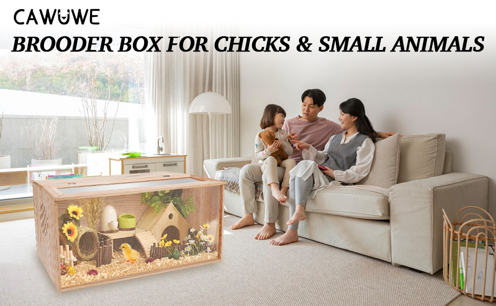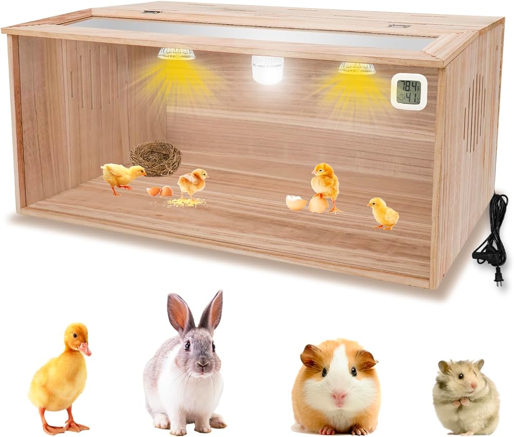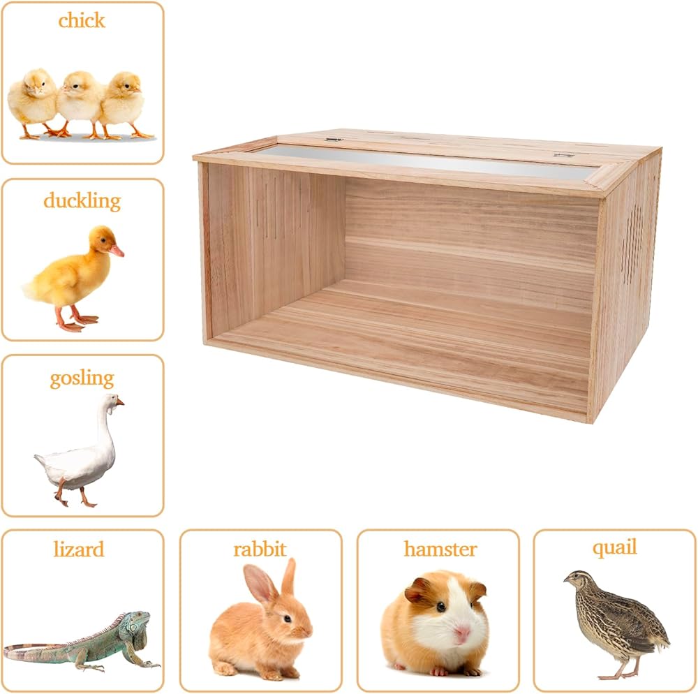 صندوق حضانة CAWUWE لفراخ الحيوانات الصغيرة يستوعب ما يصل إلى 30 كتكوت مع مجموعة لمبة ومقياس حرارة 32 × 16 × 16 بوصة قفص خشبي للبط والسمان والببغاء والأرنب والهامستر والسحلية
