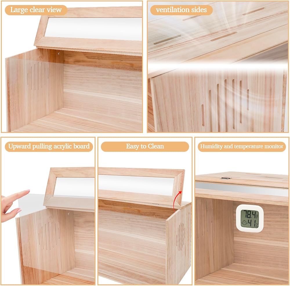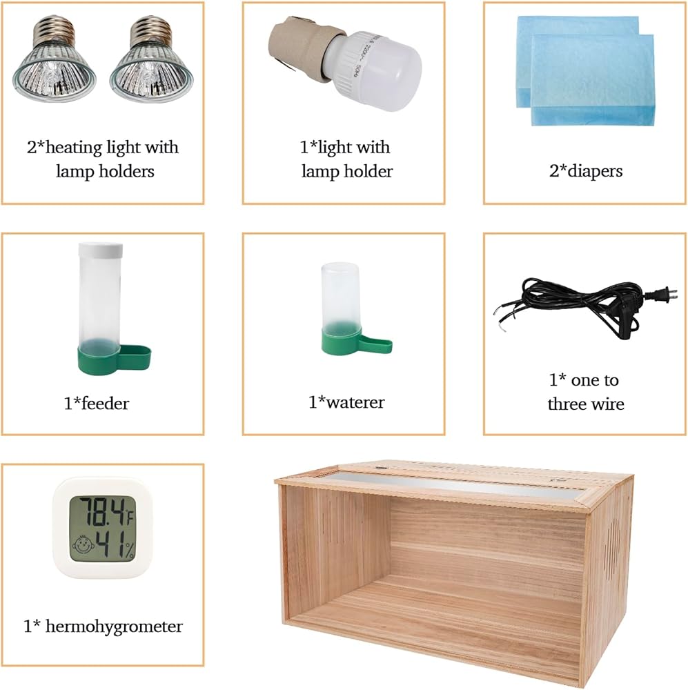 【جودة ممتازة】 صندوق حضانة الحيوانات الصغيرة الخاص بنا مصنوع من الخشب الطبيعي المطلي جيدًا وألواح الأكريليك القوية. ليس من السهل أن تشوه وتتعفن.