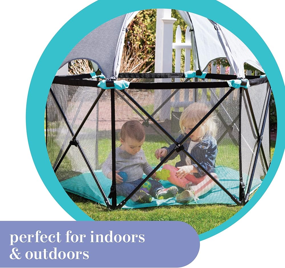 COMPACT FOLD – With a lightweight, innovative pop and fold design that sets up and comes down in seconds, plus an easy and compact fold, you can have a travel toddler and space saver baby playpen to bring with you on all your adventures.