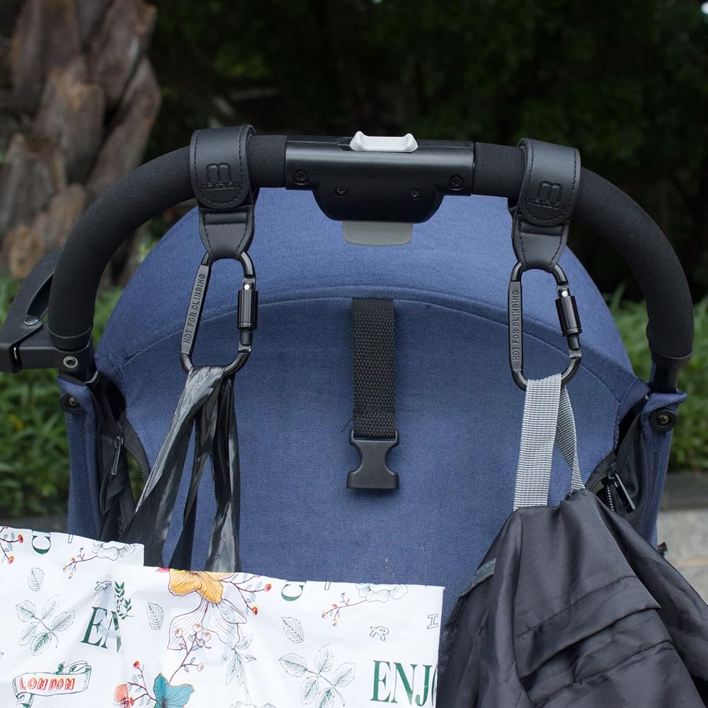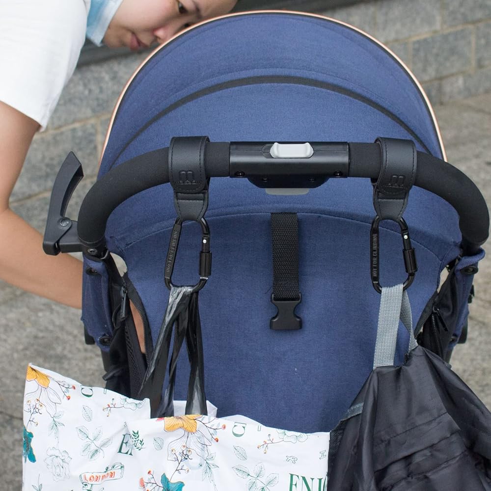 【مريحة】خطافات عربة الأطفال مفيدة لك أثناء دفع عربة الأطفال للخروج مع طفلك. باستخدامها، يمكنك تعليق أي شيء على عربة الأطفال، مثل حقائب الحفاضات وحقائب اليد وحقائب التسوق وحقائب البقالة وما إلى ذلك. حتى تتمكن من تحرير يديك وظهرك، ويمكنك الاتصال أو شرب الماء أثناء دفع عربة الأطفال