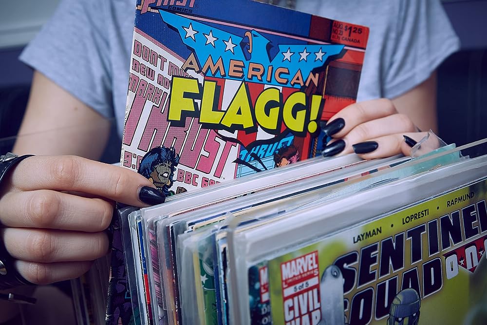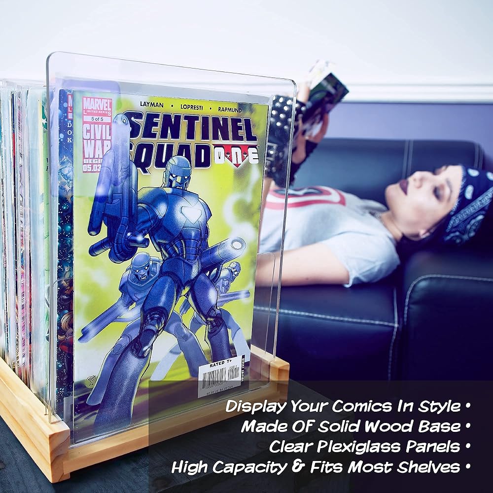 ترقية صندوق القصص المصورة - لا تخفي مشكلات الإصدار المحدود في صندوق قصص مصورة قصير. الجزء الأمامي والخلفي مصنوعان من زجاج شبكي شفاف لعرض المشكلات الخاصة رقم 1، أو الرسوم الهزلية المتدرجة، أو الأغطية الموقعة!