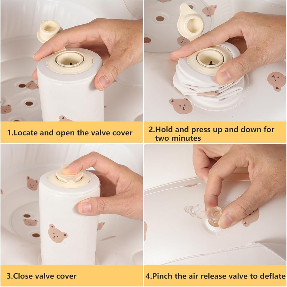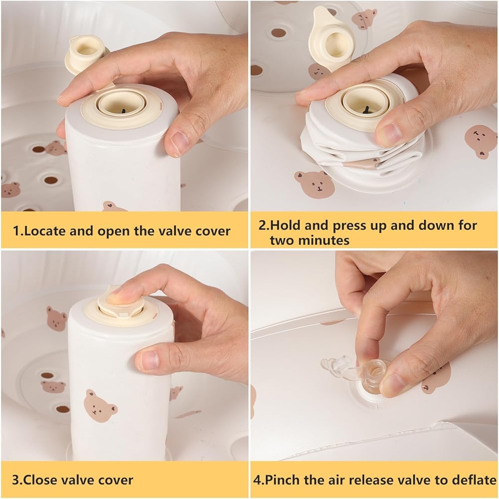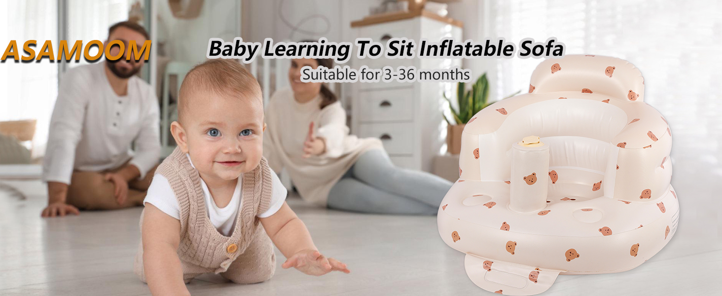 مقعد أطفال قابل للنفخ للأطفال من عمر 3 إلى 36 شهرًا، مضخة هواء مدمجة، مقعد لدعم الطفل في الصيف، كرسي للأطفال الصغار للجلوس، كرسي استحمام للأطفال على الأرض (الدب)