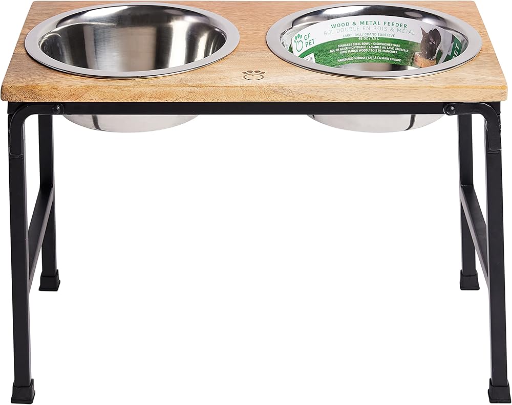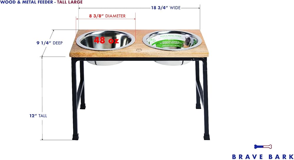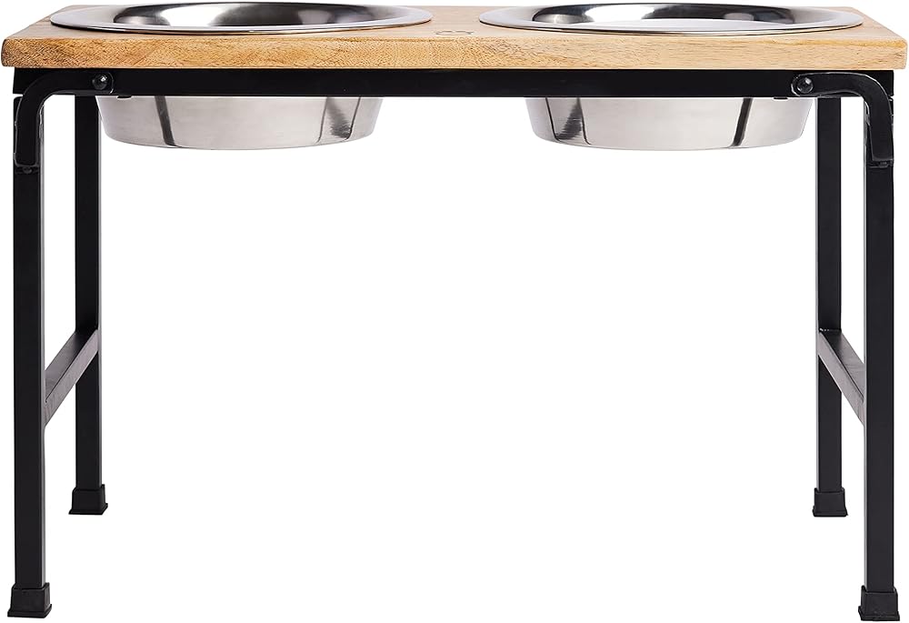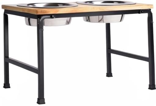وحدة تغذية من خشب اللحاء والمعدن - وحدة تغذية من خشب المانجو الفاخر مع حامل معدني، وعائين من الفولاذ المقاوم للصدأ للطعام أو الماء، مثالية للكلاب والقطط والحيوانات الأليفة من أي حجم، للمنزل أو المكتب (كبير)