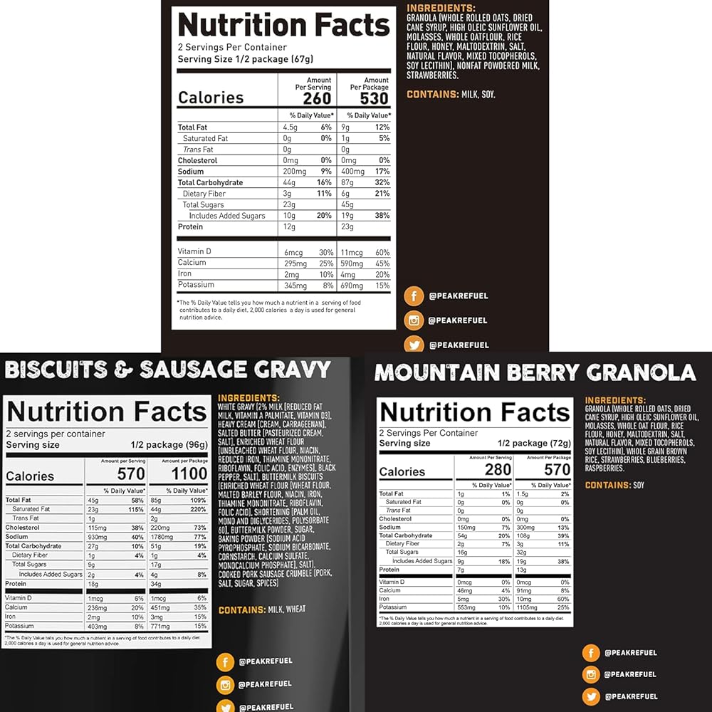 34 Grams Protein/Pouch - This meal contains 100% real meat, with no meat fillers! We provide a meal loaded with protein required to conquer any adventure. Our meats are sourced from trusted suppliers and inspected by the USDA. This results in a superior quality you can enjoy. Pro Tip: Before adding water, break apart biscuits into smaller pieces if desired.