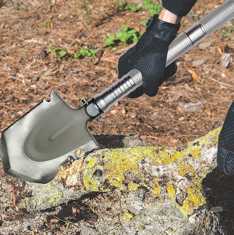 مجرفة التخييم متعددة الأدوات - مجرفة النجاة القابلة للطي للمخيمين - أداة من الدرجة العسكرية للاستخدام في الهواء الطلق، والمشي لمسافات طويلة، وصيد الأسماك، والرحلات، والصيد، وRV، والطرق الوعرة - مجرفة حفر الخنادق بالثلج والطين والأوساخ