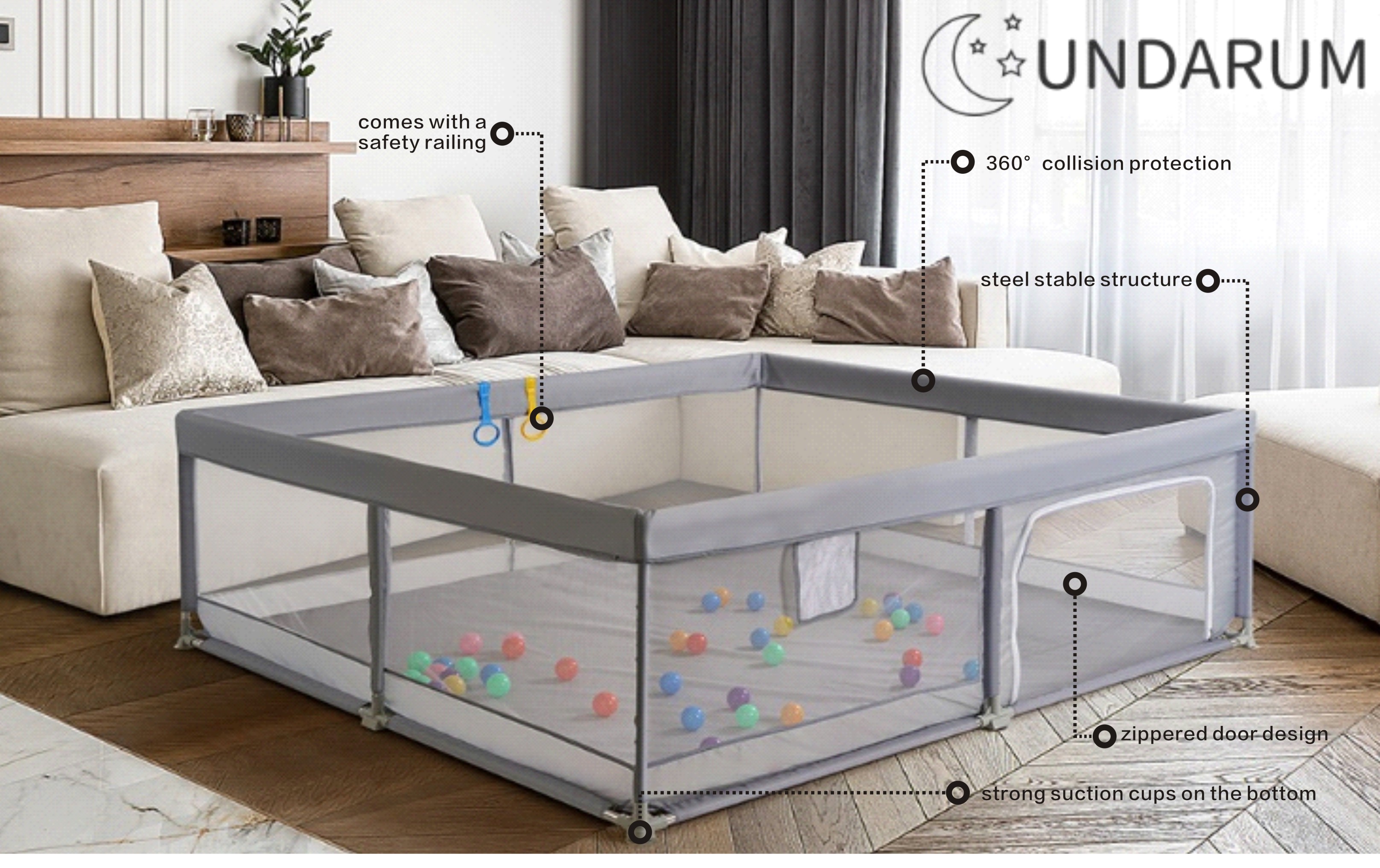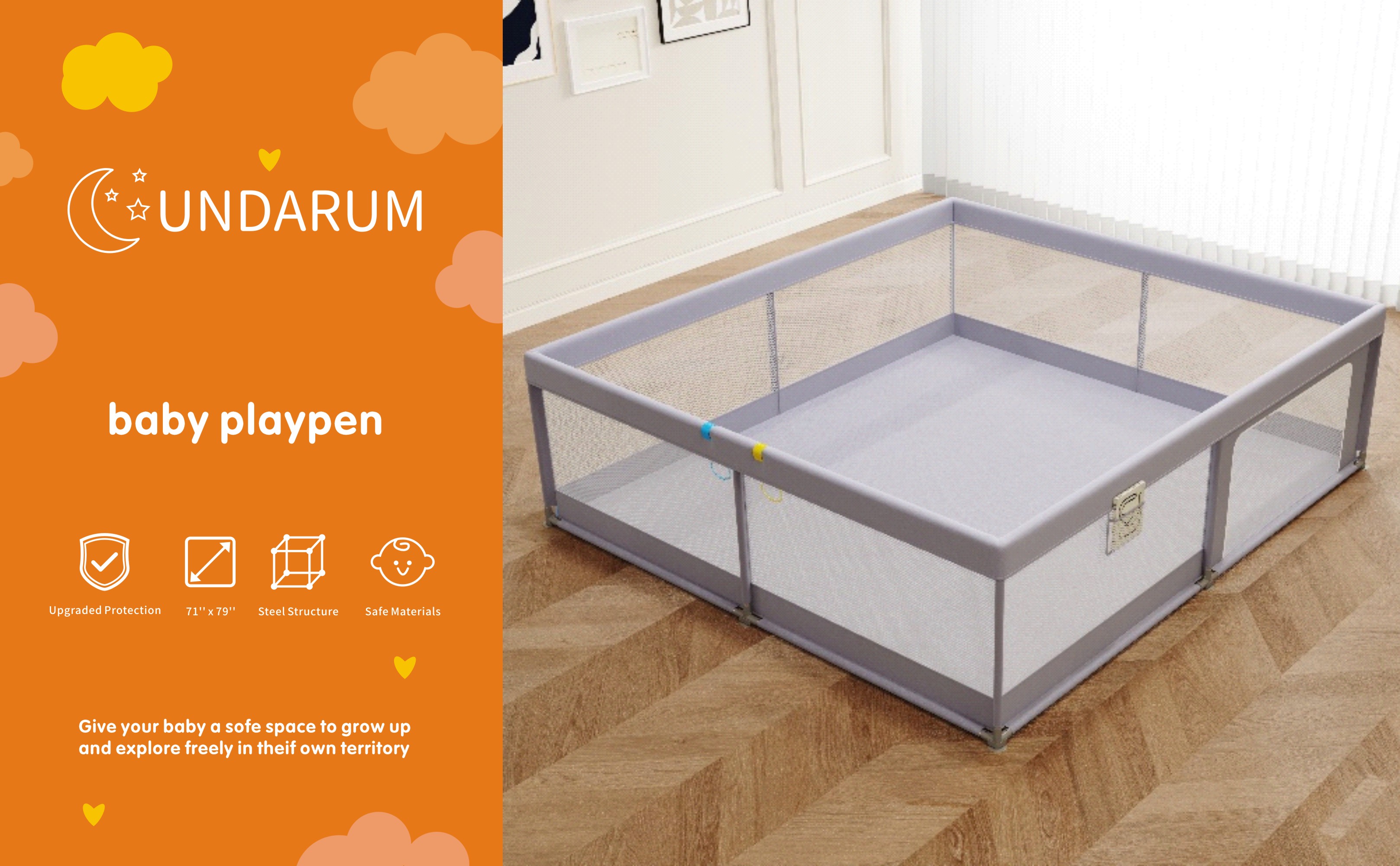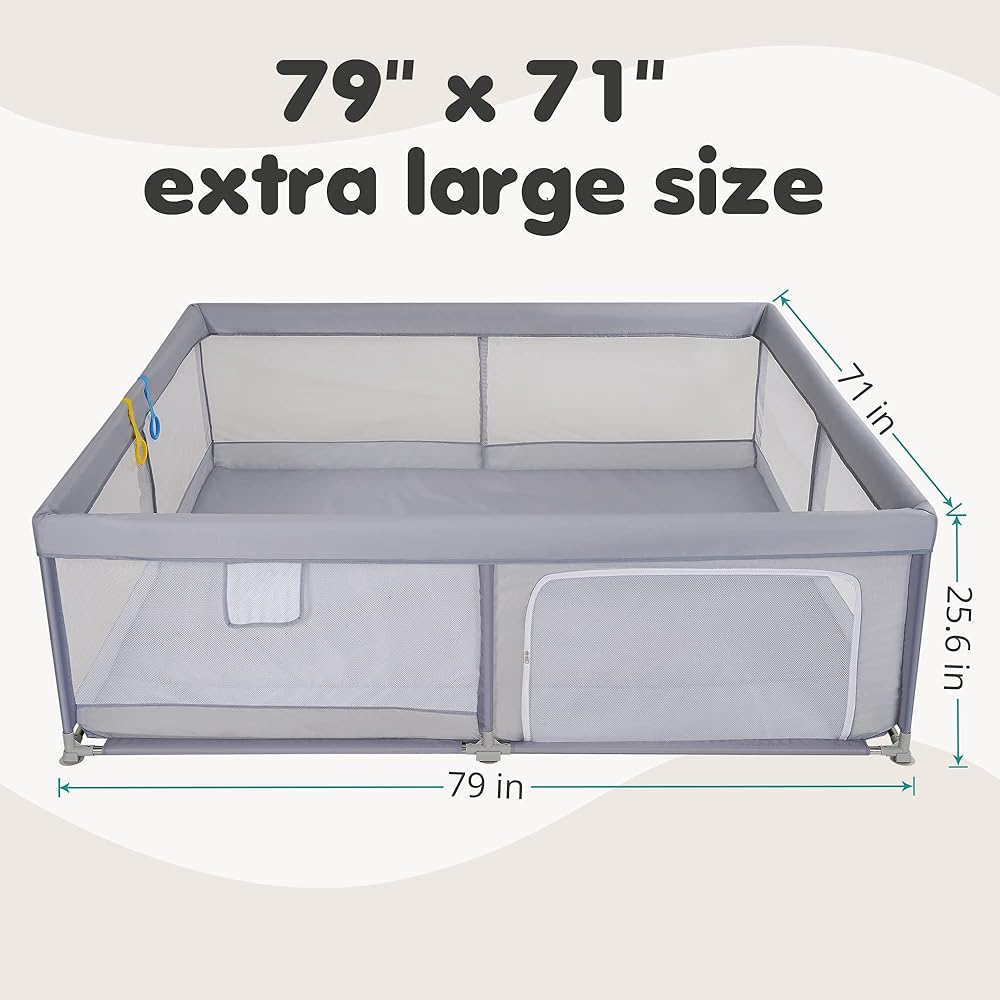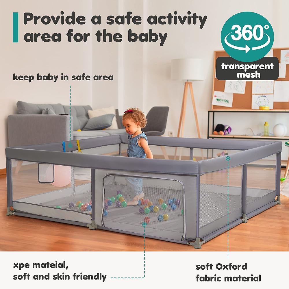 رؤية 360 درجة وشبكة مسامية - يتميز قلم اللعب الكبير هذا بشبكة شفافة قابلة للتنفس لرؤية 360 درجة، مما يسمح لك برؤية طفلك من أي زاوية. تضمن الجوانب الشبكية الناعمة التهوية التهوية المناسبة، مما يوفر بيئة آمنة ومريحة لطفلك ليلعب فيها مع إبقائه في مرمى البصر.
