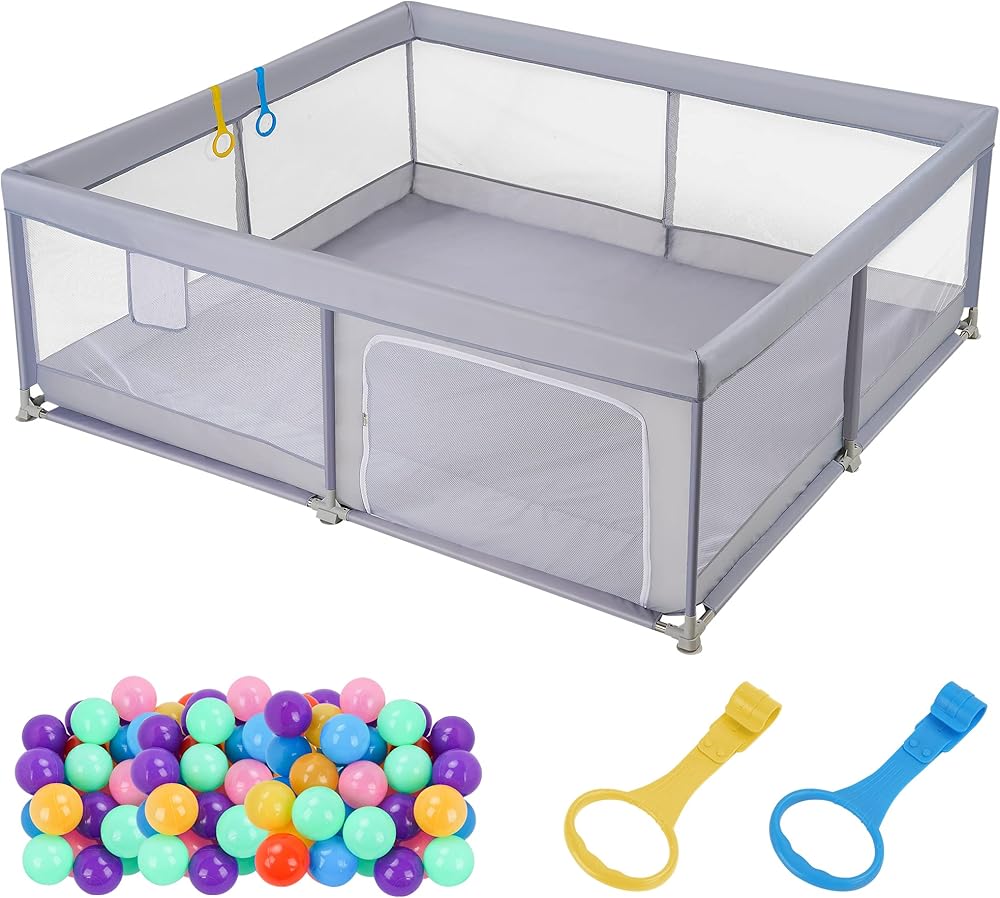 روضة أطفال فسيحة للاستكشاف - توفر روضة الأطفال مقاس 79 بوصة × 71 بوصة للأطفال الرضع والأطفال الصغار مساحة واسعة للأطفال الرضع والأطفال الصغار للعب والتحرك والتفاعل مع الألعاب أو الأصدقاء أو الحيوانات الأليفة. يضمن التصميم الشبكي المتين السلامة، وتشتمل المجموعة على 30 كرة محيطية ملونة، وقفص لعب، وحلقتين سحب مع سلة.