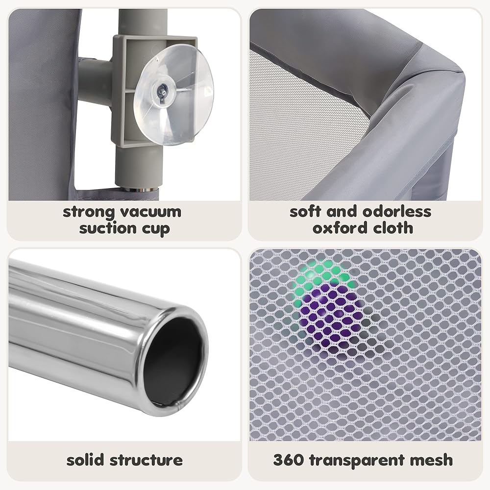 روضة أطفال صديقة للبيئة مع ثبات مانع للانزلاق - مصنوعة من مادة أكسفورد 360D ناعمة وعديمة الرائحة وشبكة قماشية قوية، توفر روضة الأطفال هذه الأمان والثبات. تمنع أكواب الشفط المضادة للانزلاق الانقلاب، بينما يحمي الإطار المعدني المبطن من السقوط والإصابات.