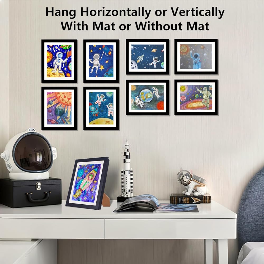 إطارات فنية للأطفال، تعرض 8.5 × 11 مع حصيرة و10 × 12.5 بدون حصيرة، إطارات عمل فنية للأطفال قابلة للتغيير، إطار تخزين لعرض الأعمال الفنية للجدار، للصور ثلاثية الأبعاد، والحرف اليدوية، والفن المعلق، والمحفظة
