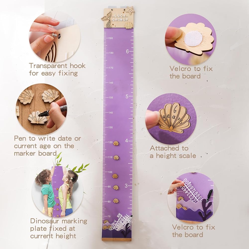 【Exquisite Design】Adorned with delightful dinosaur and mermaid motifs, this height chart offers diverse content perspectives suitable for various age groups. Let children grow alongside these charming dinosaur patterns.