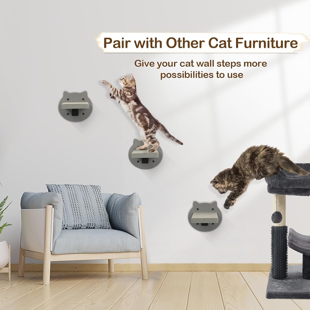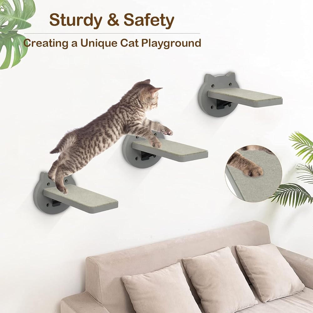【إطار قوي للقطط ووسادة لباد ناعمة】- تتكون أرفف الحائط للقطط المثبتة على الحائط من 3 خطوات للقطط مع وسادة خدش عليها، ما يمكن أن يحمل قطة يصل وزنها إلى 15 رطلاً. مع إطار حديدي محدث، يمكن تثبيته على الحائط بشكل أكثر ثباتًا. وفي الوقت نفسه، يمكن أن تعتني وسادة اللباد الناعمة بسلامة قطتك الصغيرة. يمكنهم أن يخدشوا ويقفزوا ويلعبوا في جنتهم الخاصة، حتى عندما تكون بعيدًا عن المنزل.