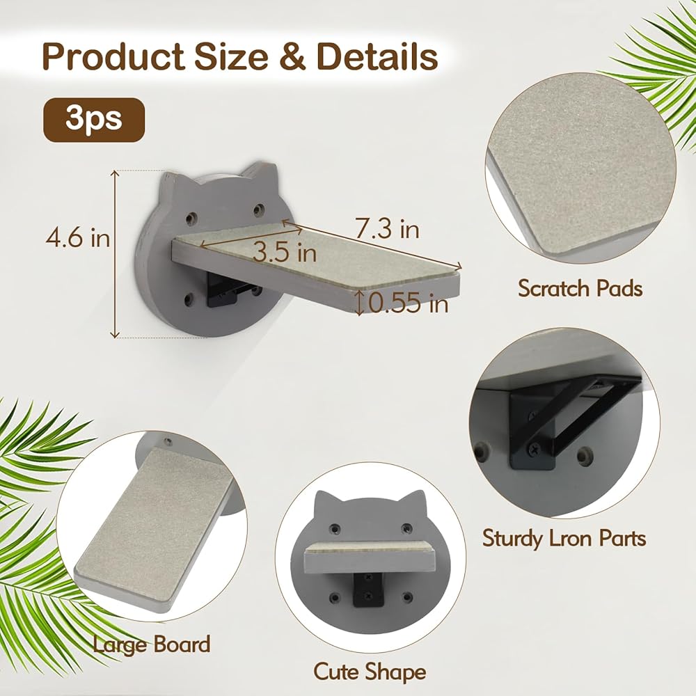 【قوي وآمن】- يبلغ مقاس الأثاث الجداري للقطط 7.9 بوصة × 3.5 بوصة وهو مصنوع من ألواح جسيمية شديدة التحمل، قوي ومتين، ويمكن تعليقه على الحائط بإحكام شديد لتأمين قططك. سطح الخشب أملس ومسطح وخالي من الاختباء، ولن يؤذي صديقك العزيز. توفير مكان آمن للعب القطط الخاصة بك!