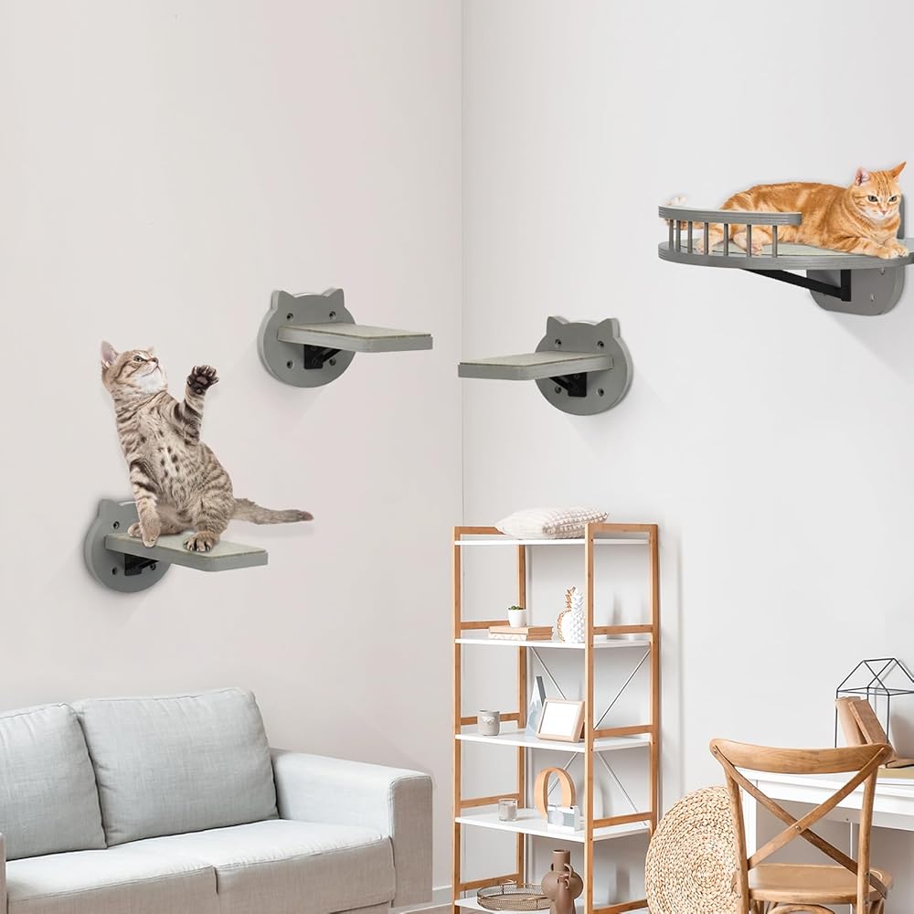【سهلة التجميع والتركيب على الحائط】- مجموعة أرفف القطط تأتي مع براغي وتعليمات. عملية التجميع بسيطة جدًا، ولن تحتاج سوى إلى القليل من الوقت لتجميع المجموعة بأكملها بسهولة! تحتوي الألواح الخشبية لدينا على فتحات محفوظة، ما عليك سوى تثبيتها على الحائط باستخدام الأدوات، ويتم الانتهاء من إطار تسلق القطط المثالي.