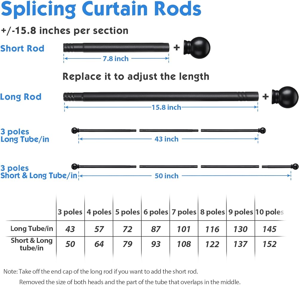 Adjustable lengths of curtain rods range from 28"-50"for different size windows.