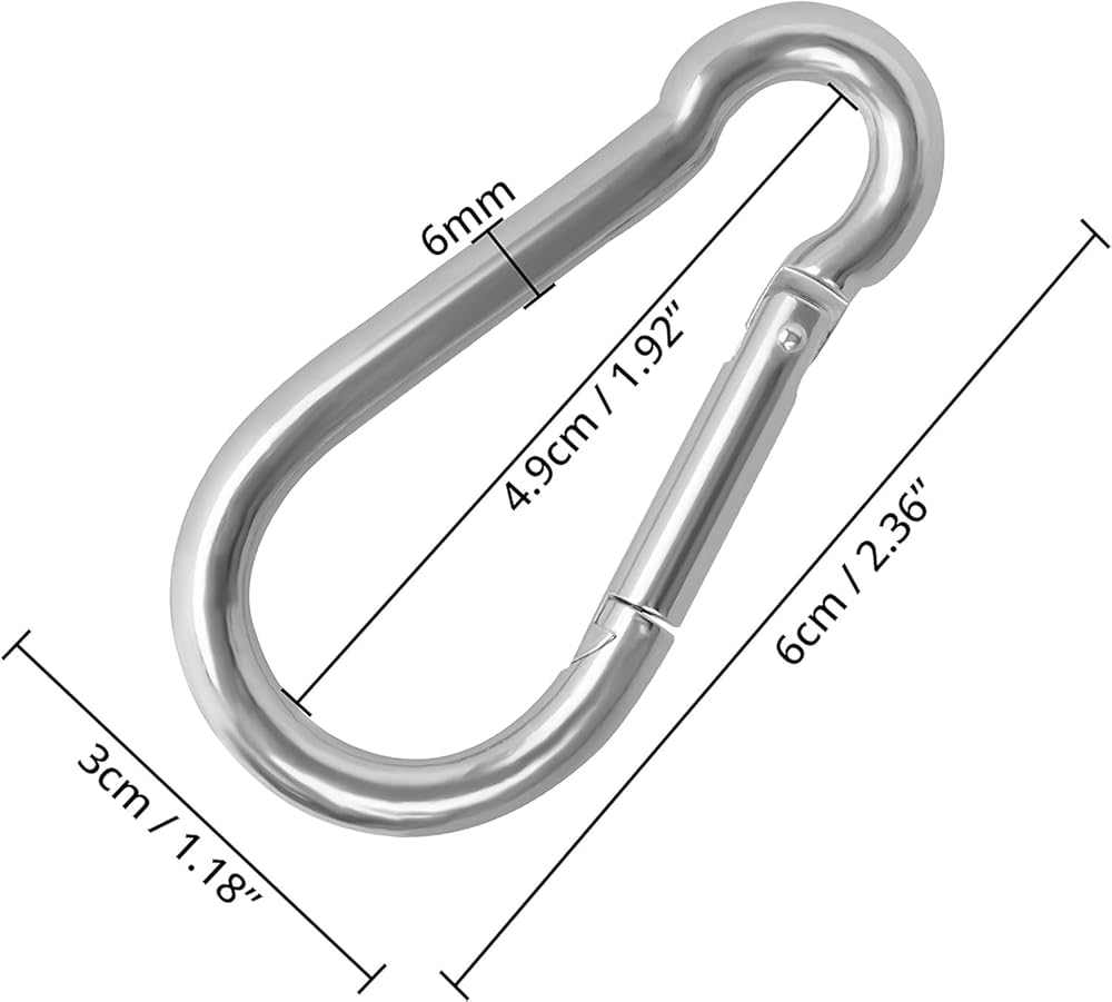 ✅SIZE & PRACTICAL - 2.38 inches x 1.13 inches, Opening Width: 0.32 inches, Weight: 32.7g. 1/4" Spring Snap Hook is perfect for hanging a bird feeder, light, dog collar, hammocks, connecting chains and ropes, securing the gate locks, keychain clip hook, chain link, quick link chain connector, locking carabiner clips, mini locking d ring, stainless steel d clip, quick connect loop, d shape clips, d ring locking carabiner, small locking clip.