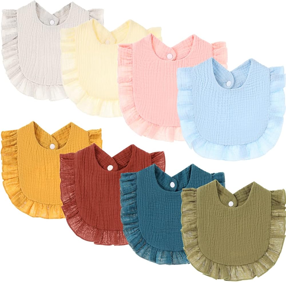 مرايل أطفال من الموسلين، 8 قطع من مرايل الأطفال باندانا قطنية للجنسين الأولاد والبنات، مجموعة من 8 ألوان سادة للتسنين واللعاب