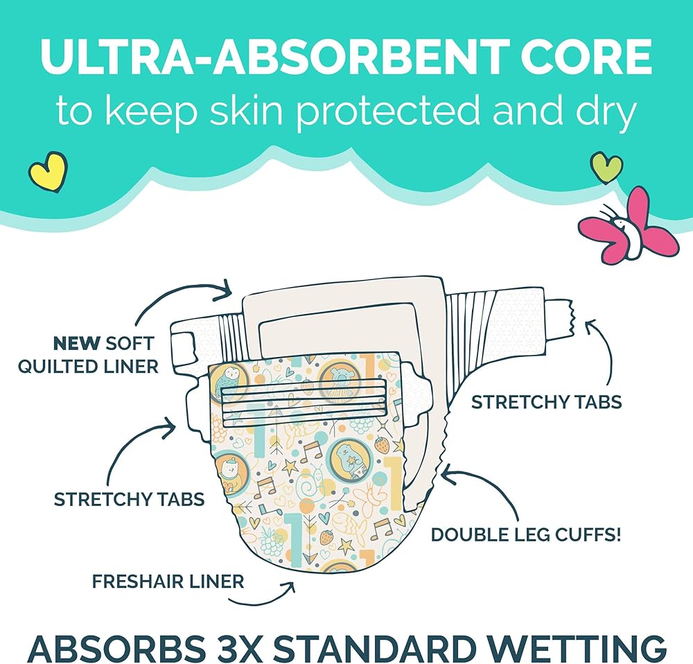 مصنوع لبشرة طفلك الحساسة، حماية ممتازة من التسرب، قلب فائق الامتصاص للحفاظ على بشرة جافة