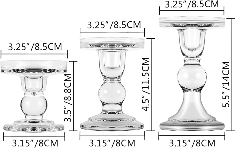 💎【SUITABLE SIZE】Height: S - 8.8CM/3.5”; M - 11CM/4.5”; L - 14CM/5.5”; All 3 candle holders have the same plate opening D-3.35", fits all candles with D-3" or smaller