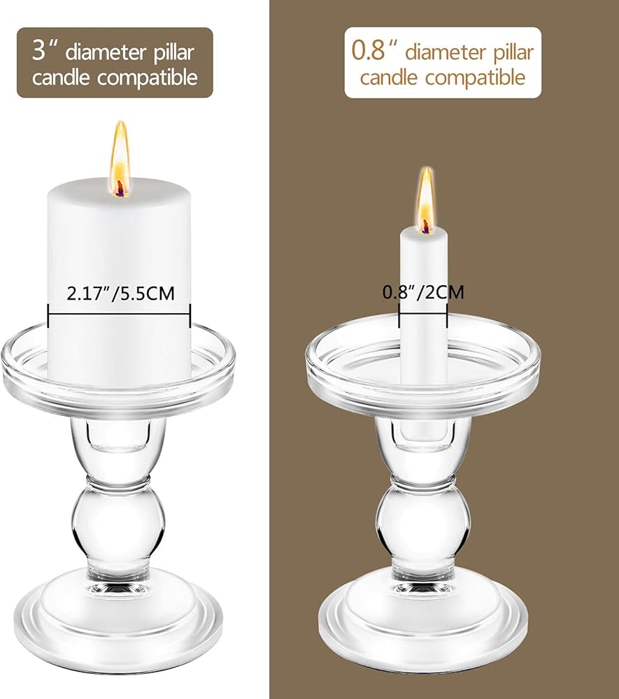 💎【PERFECT DETAILS】 The round edge design of the candle holder make it comfortable to touch; Lead-free glass is healthy material, transparent and bright; The bottom of the holder is thickened and the stable base will make it safer to place anywhere at home