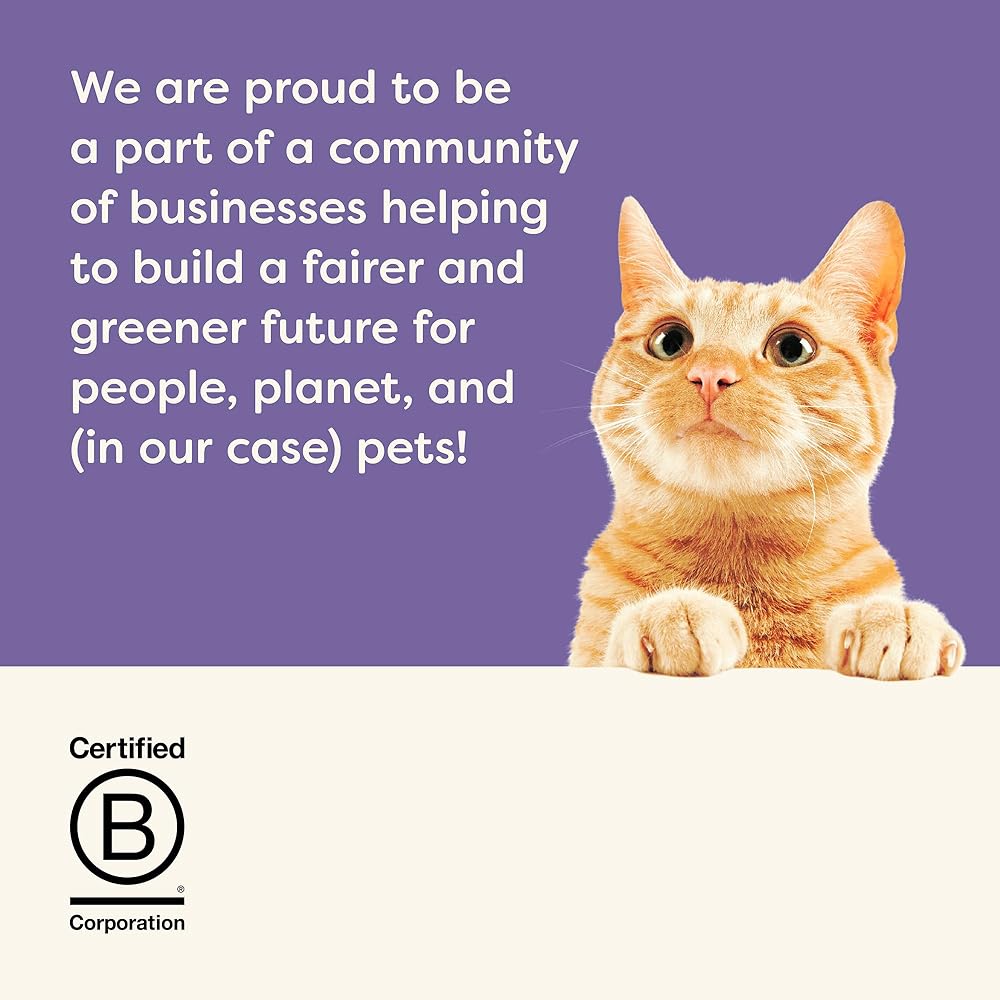 At Applaws, we believe happiness is natural. A happy and healthy cat starts with food made from the highest quality ingredients, we only put in the good stuff! Deliciously natural, our food is free from artificial preservatives, colors, and flavors and all recipes are made with 100% natural, limited ingredients. With high quality protein always the first ingredient, your cat's natural cravings will be met! Feed your cat's curiosity with textures like savory gravy, hydrating broth, or creamy mousse. Mix it up from poultry to fish. With a variety of flavors and textures to choose from, each mealtime is its own adventure with Applaws. Our wet cat food can be paired with any complete dry cat food as a complementary addition to their daily feeding regimen. Made with delicious, natural ingredients your cat will love, enhanced with vitamins & minerals, Applaws dry cat food contains everything your cat needs and wants for a complete & balanced diet. A Carefully crafted recipe that provides an excellent level of complex natural carbohydrates to help keep your cat healthy and active. The menu doesn't have to end there! Keep your purring pal playful with deliciously natural treats, made with only 1 ingredient, real protein! Happy, Healthy Cats are our specialty, you can truly trust the Natural Goodness in Applaws. At Applaws, we are dedicated to providing your purring pal with the finest nutrition while also making a positive impact on planet. We are proud to have achieved B Corp certification since 2021, a mark of distinction that reflects our commitment to operating as a responsible and ethical business. We believe in creating a positive impact not only on our consumers, but also on People, Pets and Planet.