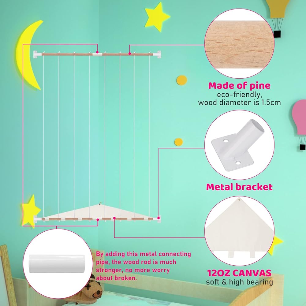توفير المساحة: مصممة للاستخدام على جدار الزاوية، لن تشغل أرجوحة تخزين الألعاب هذه مساحة أرضية إضافية. قطع مثلث، يمكن أن يستفيد بالكامل من وضع الزاوية، مما سيوفر لك مساحة كبيرة. منظم ألعاب معلق رائع لغرفة لعب الأطفال وغرفة النوم.